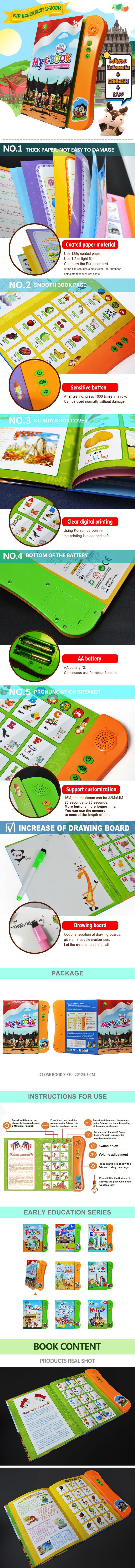 跨境kids toys早教机 英文电子发声书益智玩具有声点读书可做俄语