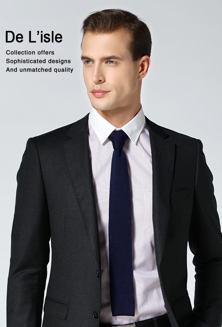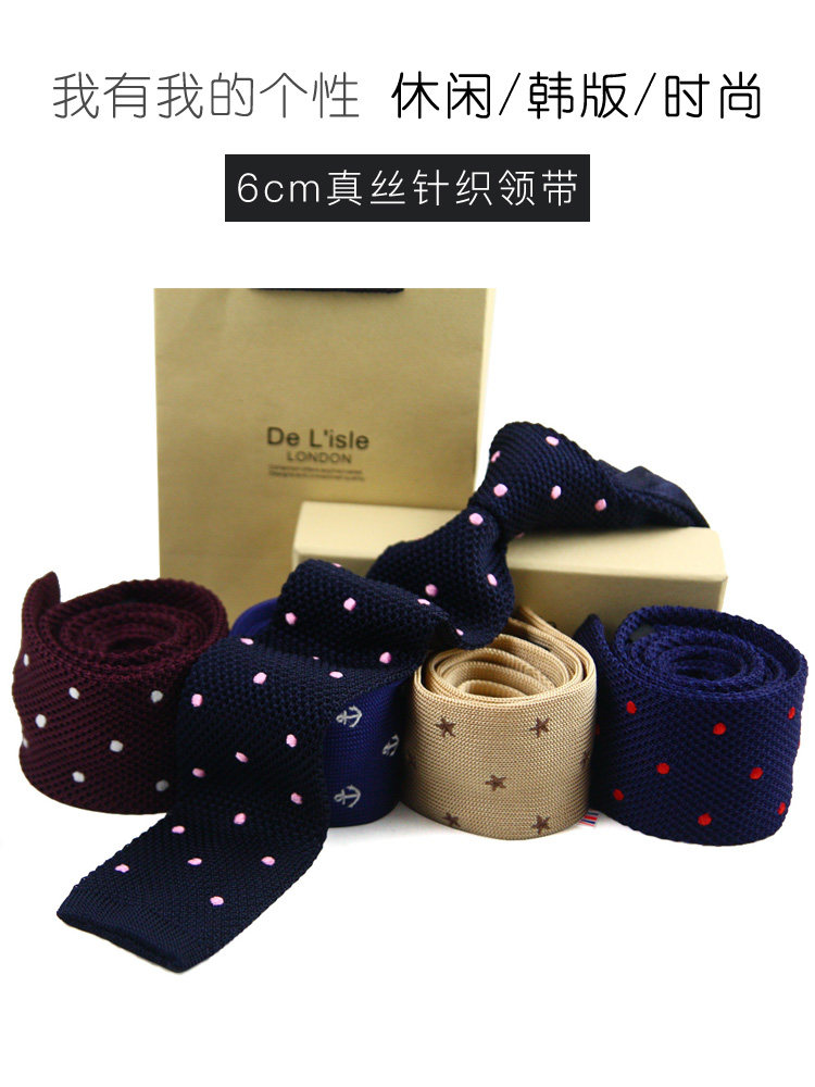 British New De L' isle 6cm 실크 니트 넥타이 남성용 좁은 웨딩 비즈니스 공식 착용스토어 가기