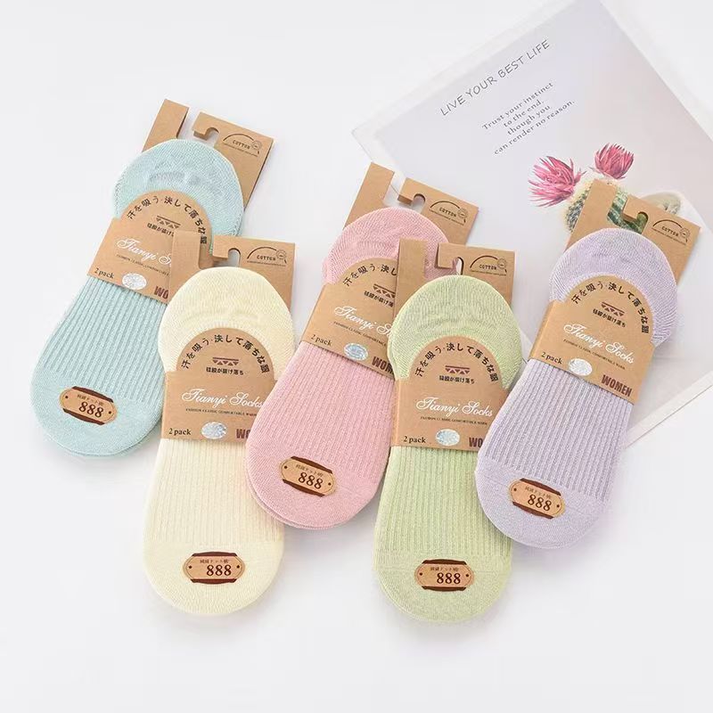 줄무늬 일본식 단색 투명 양말 면 실리콘 미끄럼 방지 여성용 짧은 양말 캔디 컬러 얕은 입구 레트로 여성 양말 도매스토어 가기