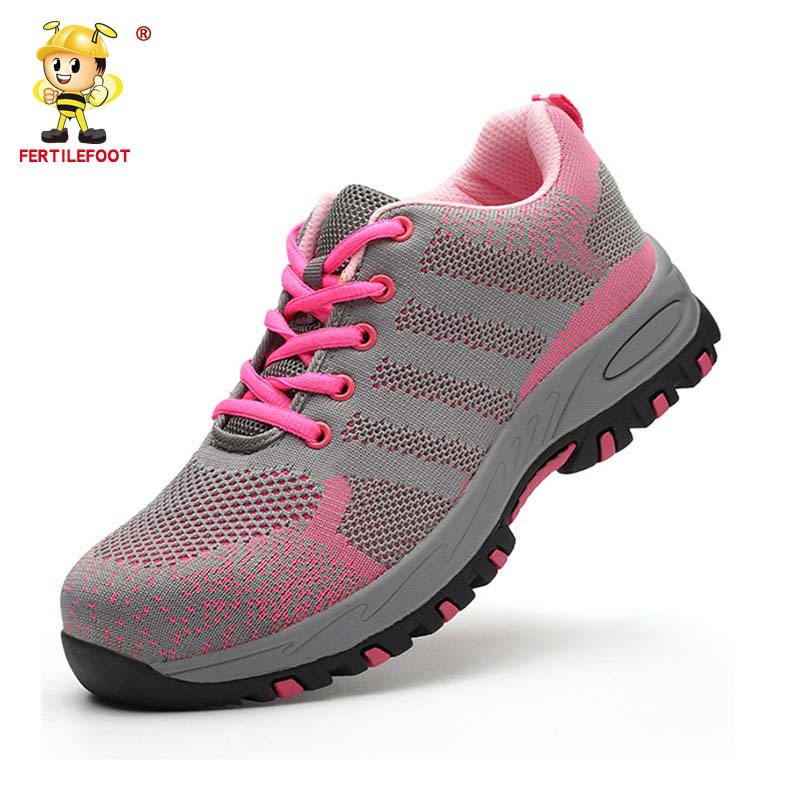 경량 여성용 통기성 플라잉 짠 노동 보호 신발 여성용 스매싱 방지 및 피어싱 방지 안전 보호 작업 신발 내마모성 및 미끄럼 방지스토어 가기