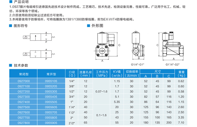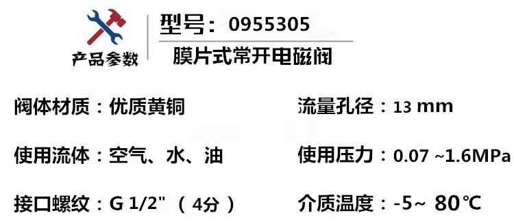产品名称: 0955二位二通常开式膜片电磁阀