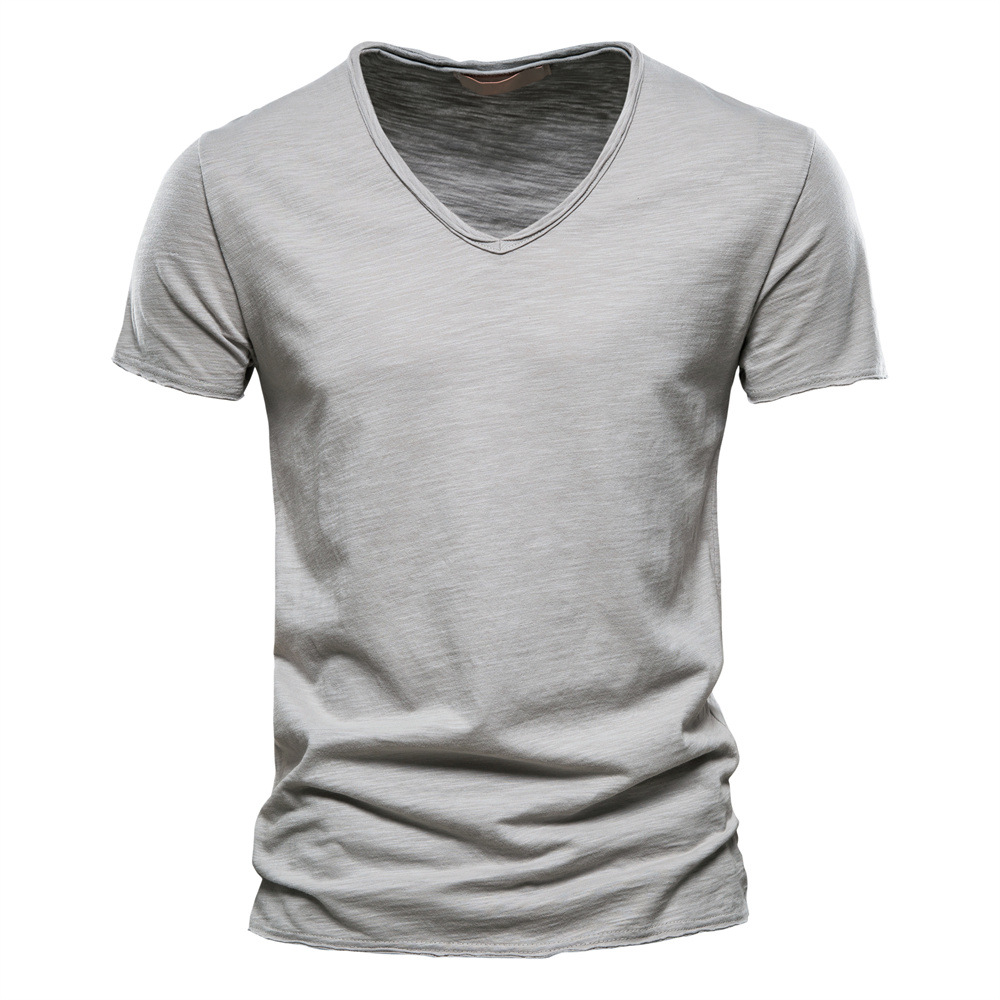 여름 신상 남성용 무지 대나무 면 브이넥 반팔 티셔츠 순면 인기 유럽 및 미국 수출 남성복 트렌드