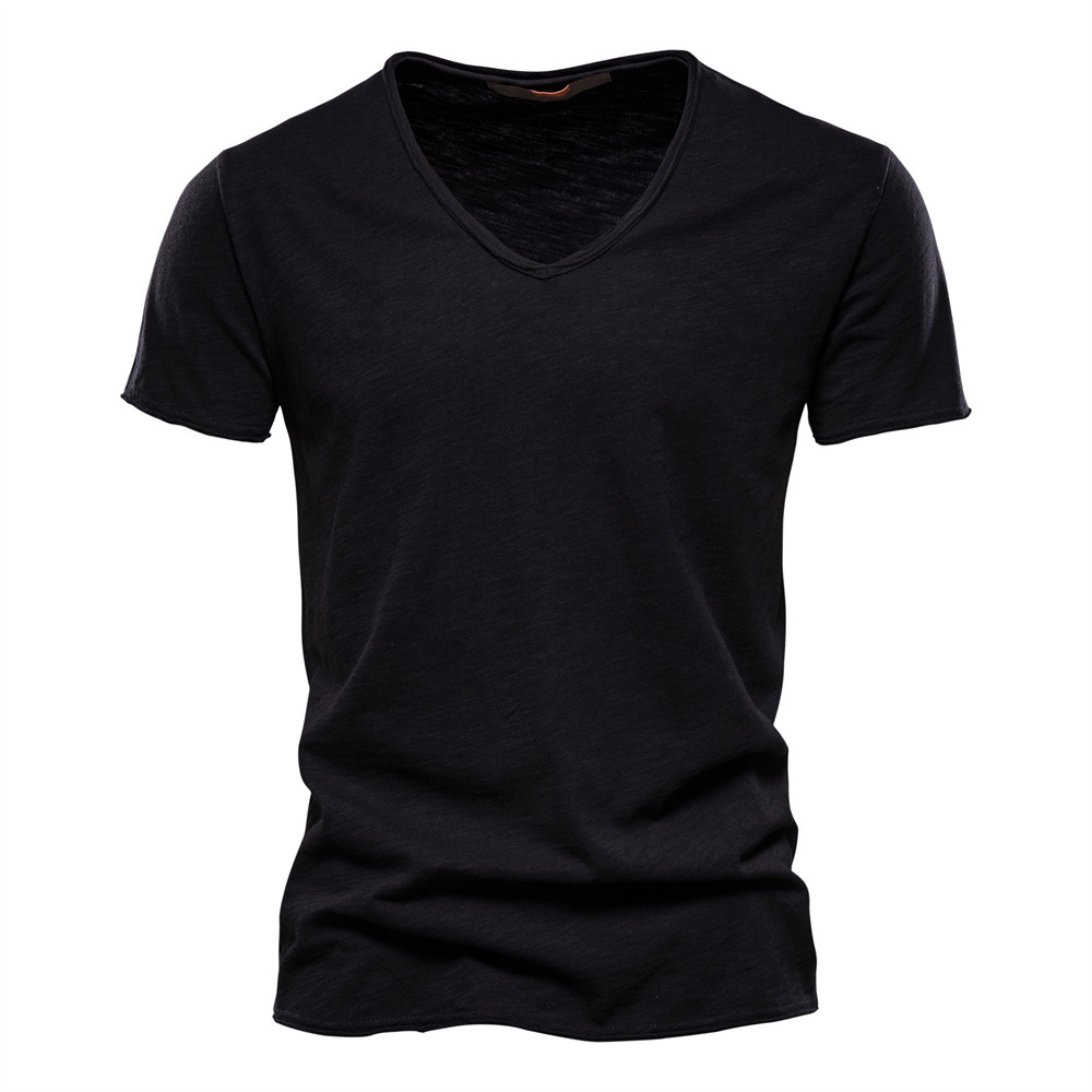 여름 신상 남성용 무지 대나무 면 브이넥 반팔 티셔츠 순면 인기 유럽 및 미국 수출 남성복 트렌드스토어 가기