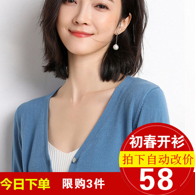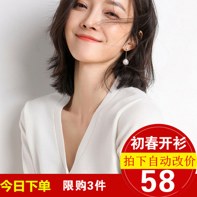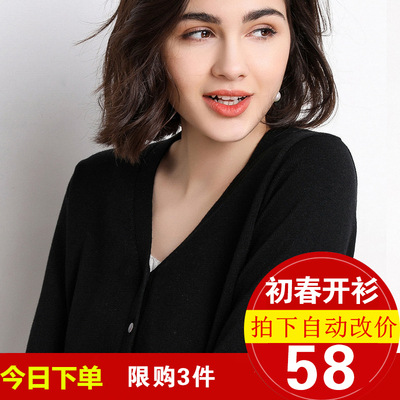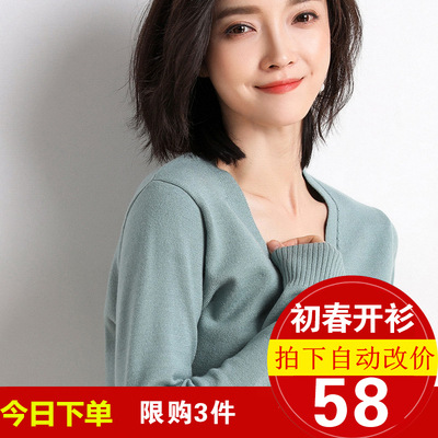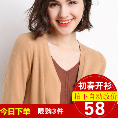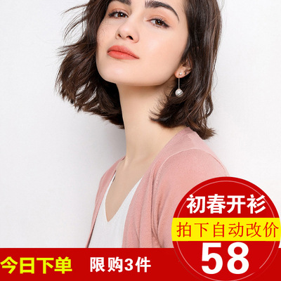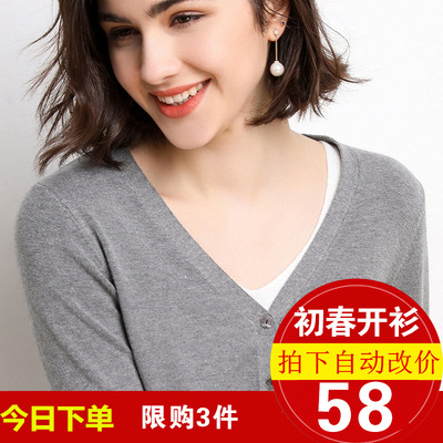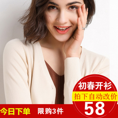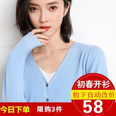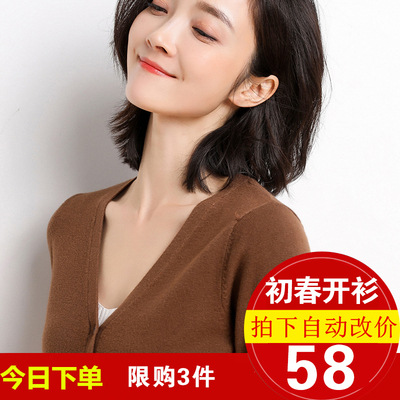 2023 봄 새로운 루즈한 스웨터 카디건 V-넥 짧은 느슨한 단색 스웨터 재킷 모든 매치 카디건 여성용 배치스토어 가기