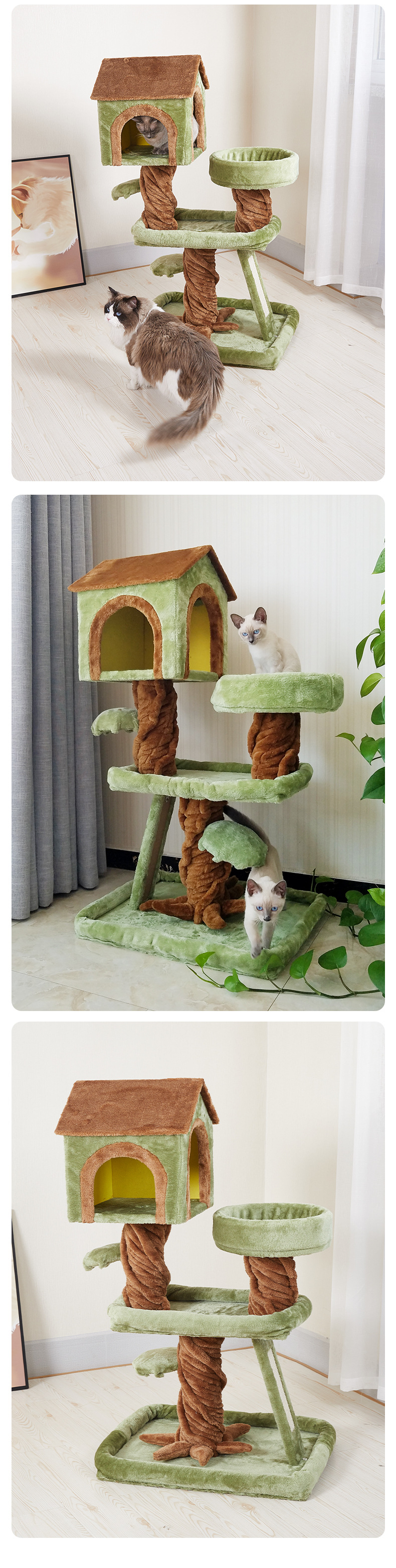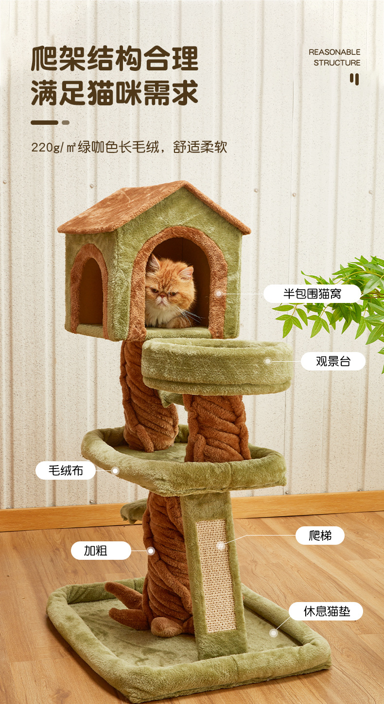 목재 고양이 클라이밍 프레임 도매 고양이 집 고양이 나무 일체형 고양이 케이지 천장까지 이어지는 나무집 스크래치 보드 소프트 패키지 고양이 점프 플랫폼스토어 가기