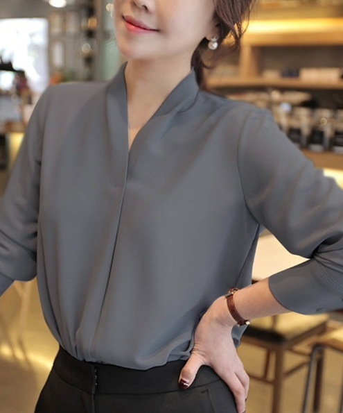 4 색 2025 가을 새로운 긴팔 셔츠 느슨한 전문 여성 기질 여신 스타일 바닥 쉬폰 셔츠 938스토어 가기
