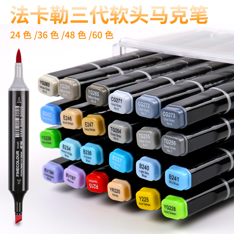 Fakal의 3 세대 소프트 헤드 마커 세트 표준 애니메이션 24/36/48/60/72/120/240/480 색상