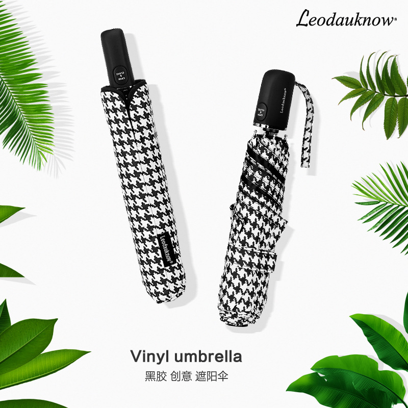 새로운 Leodauknow houndstooth 평면 3 배 자동 레트로 비닐 UV 우산 로고 광고 우산