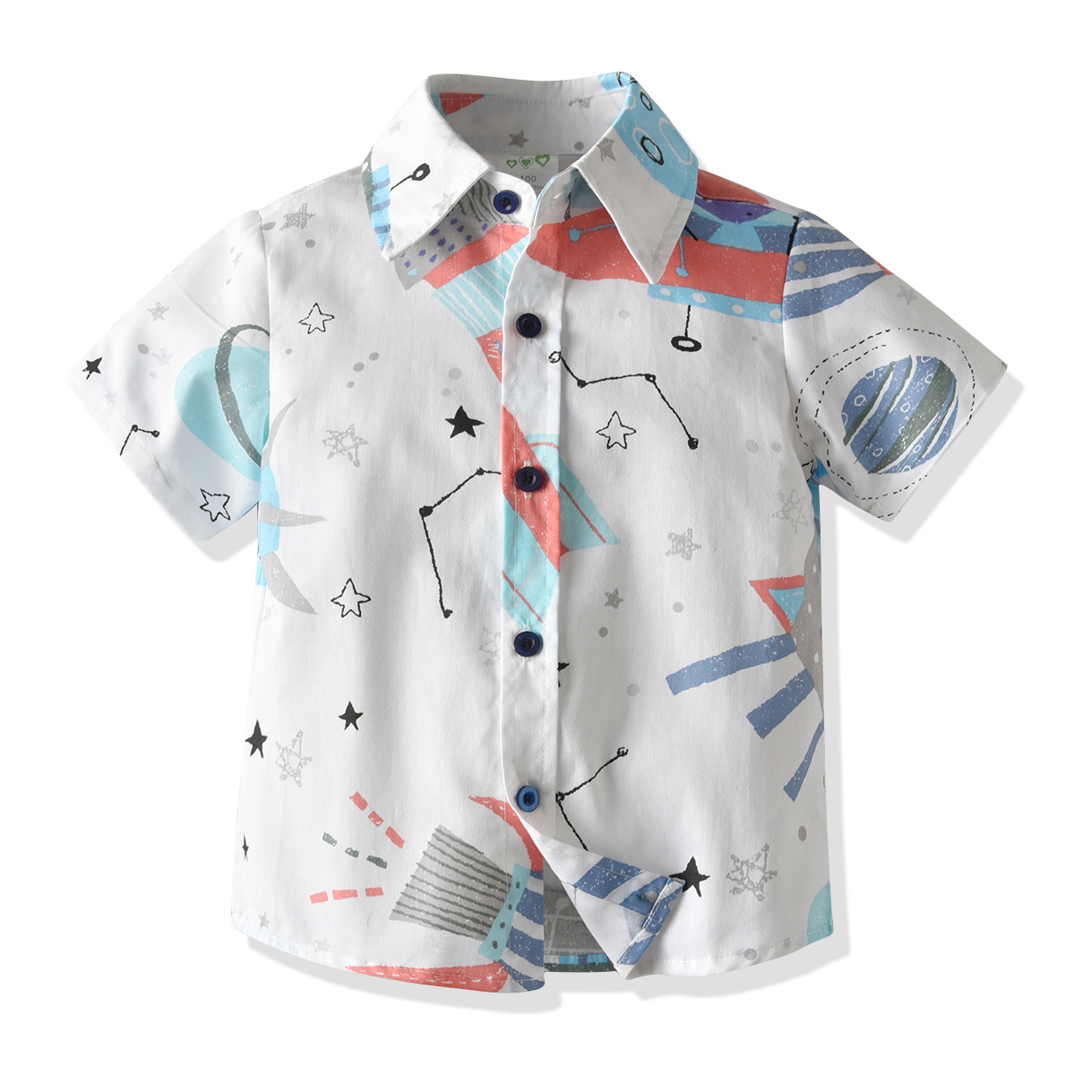 2024 국경 소년 아기 순수 면화 반팔 셔츠 중형 및 대형 어린이 여름 만화 우주선 카디건 배달