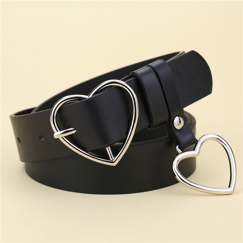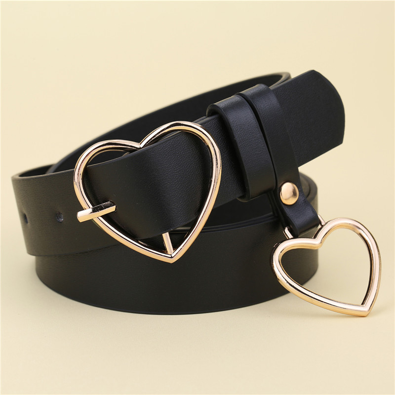 패션 크리에이 티브 한국 여성의 벨트 복숭아 하트 펜던트 링 사랑 버클 블랙 캐주얼 PU 가죽 모든 일치 핀 버클 벨트스토어 가기