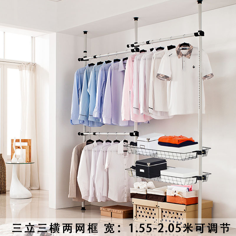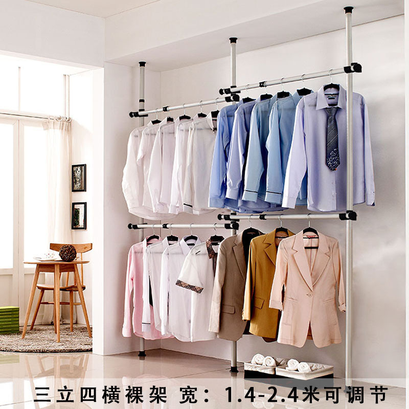 오픈 스타일 옷장 실내 다기능 텔레스코픽 행거 비 펀칭 설치 간단한 코트 랙