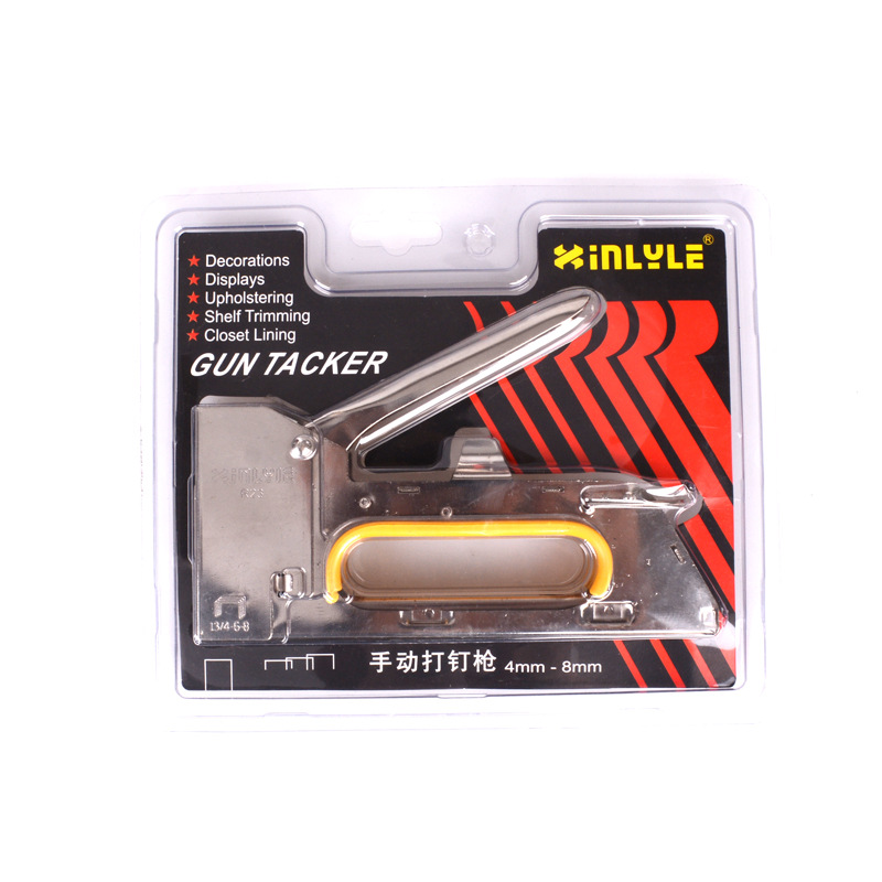 • 该打钉枪主要主要适用于:装潢,招牌。为沙发,椅子装上坐垫或套、弹簧等。书架、厨架的装饰。壁橱、衣橱等的里衬。美术用品。