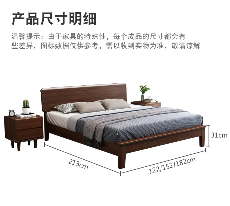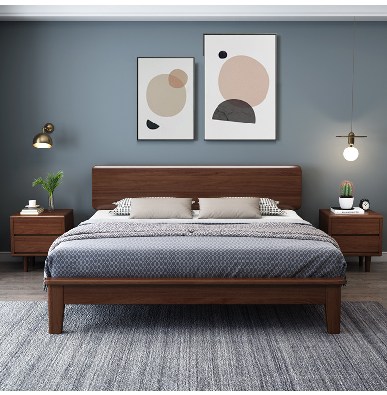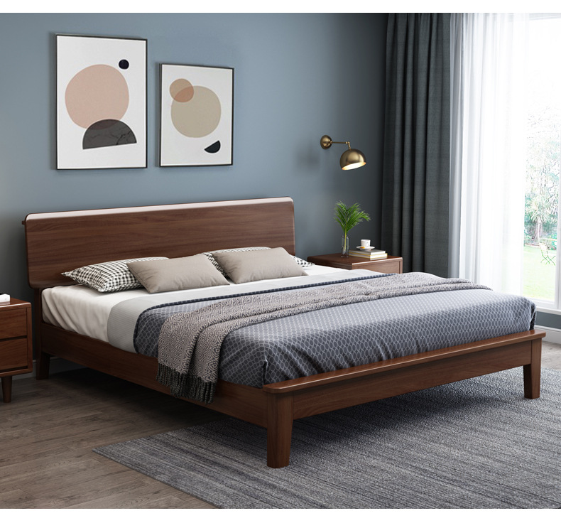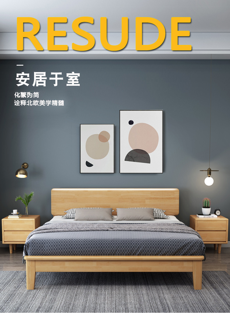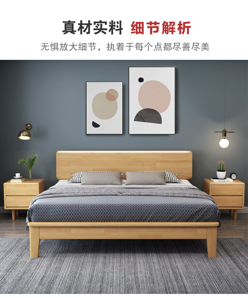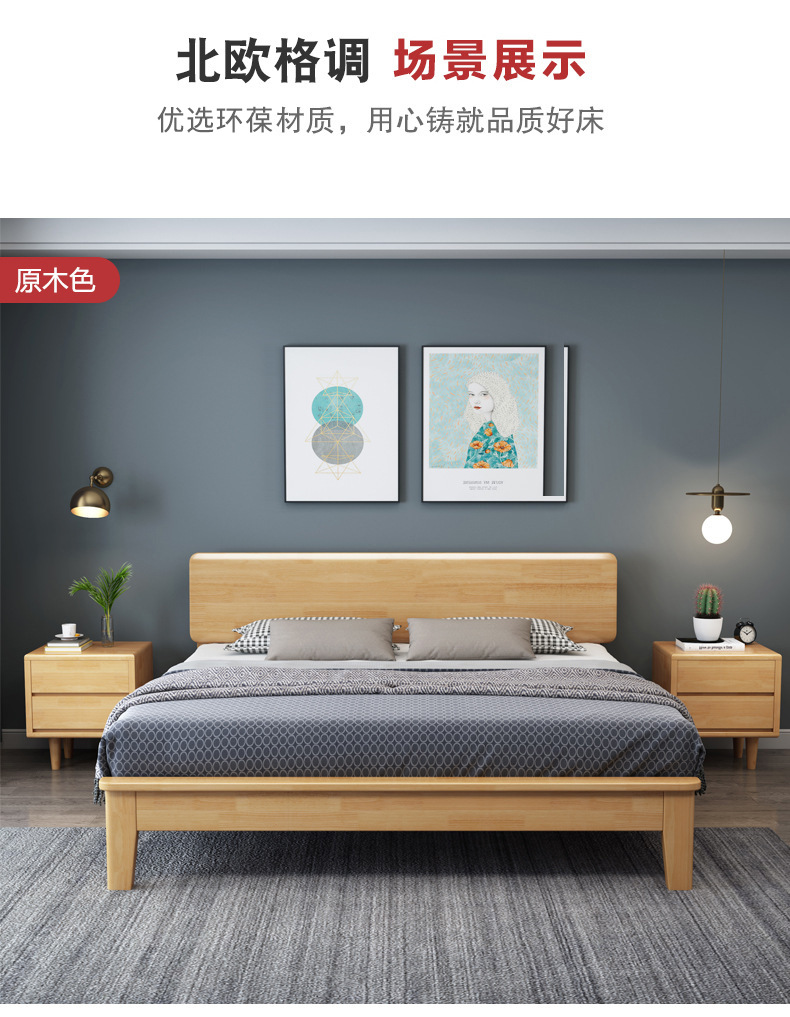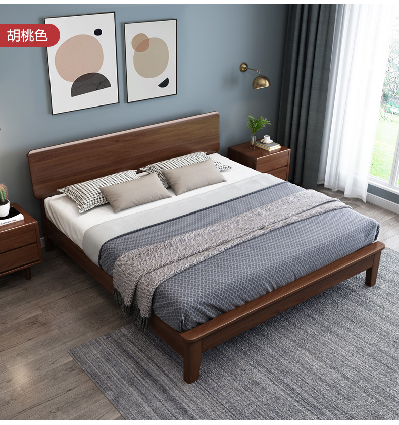 북유럽 단단한 나무 침대 작은 아파트 1.2m 싱글 침대 1.635m 1.8m 더블 침대 간단한 현대 가구스토어 가기