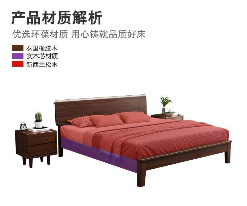 북유럽 단단한 나무 침대 작은 아파트 1.2m 싱글 침대 1.635m 1.8m 더블 침대 간단한 현대 가구