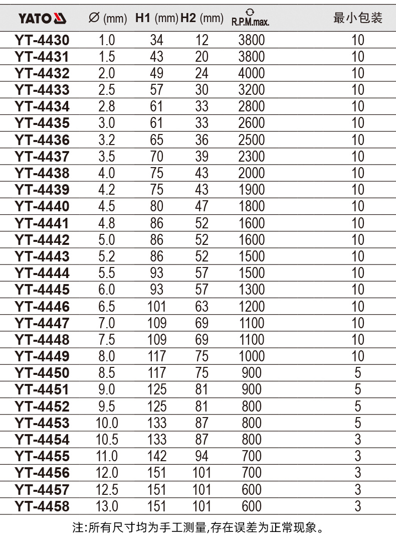 • 4.5x80mm 10 개 YT-4440
