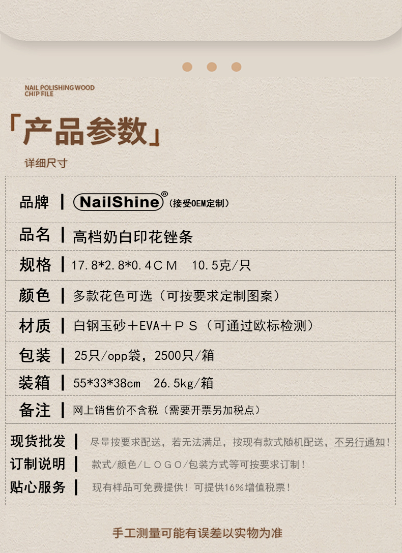순수한 흰색 사포 반달 네일 파일 인쇄 연삭 스트립 치아 트리밍 파일 특수 문지름 1.6스토어 가기
