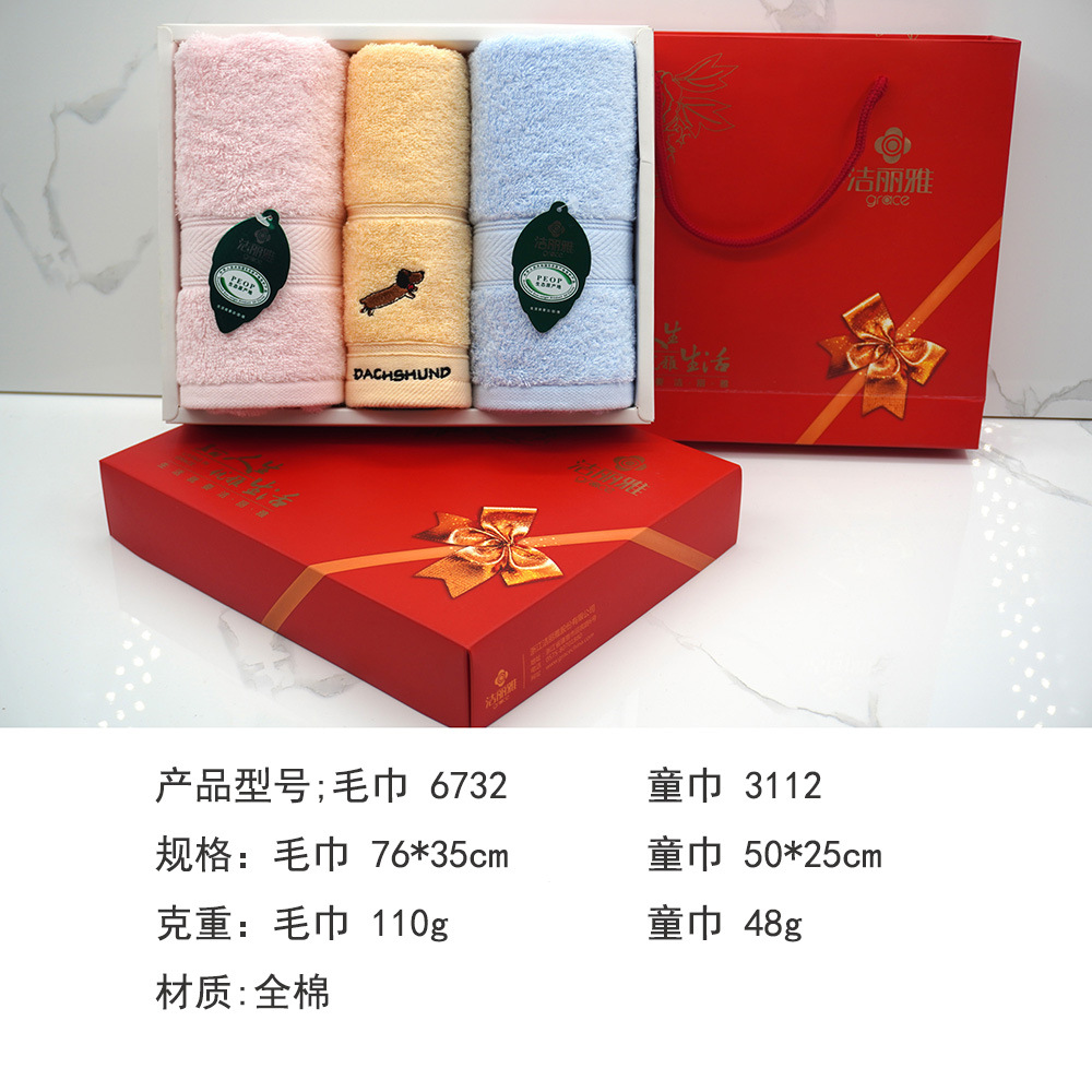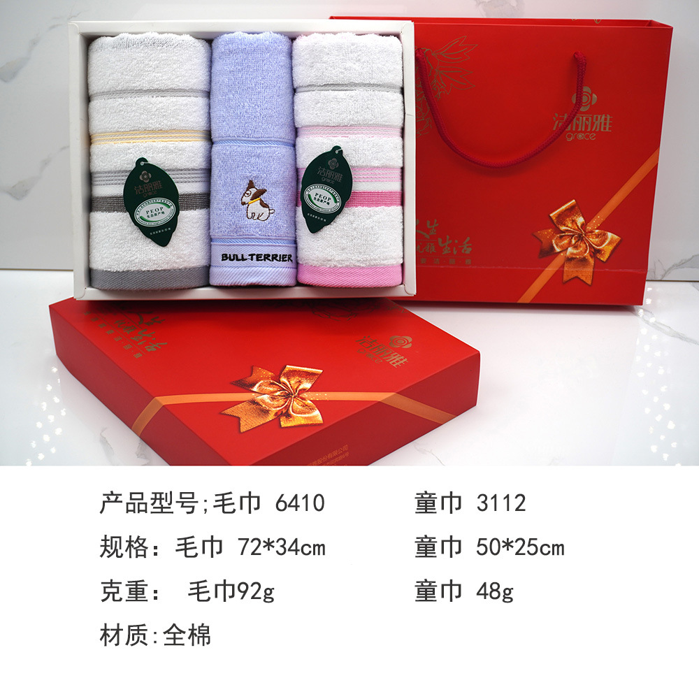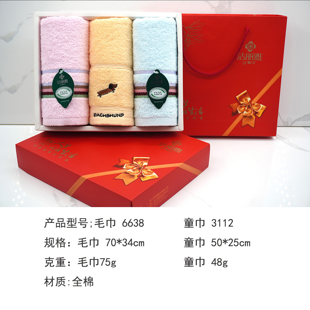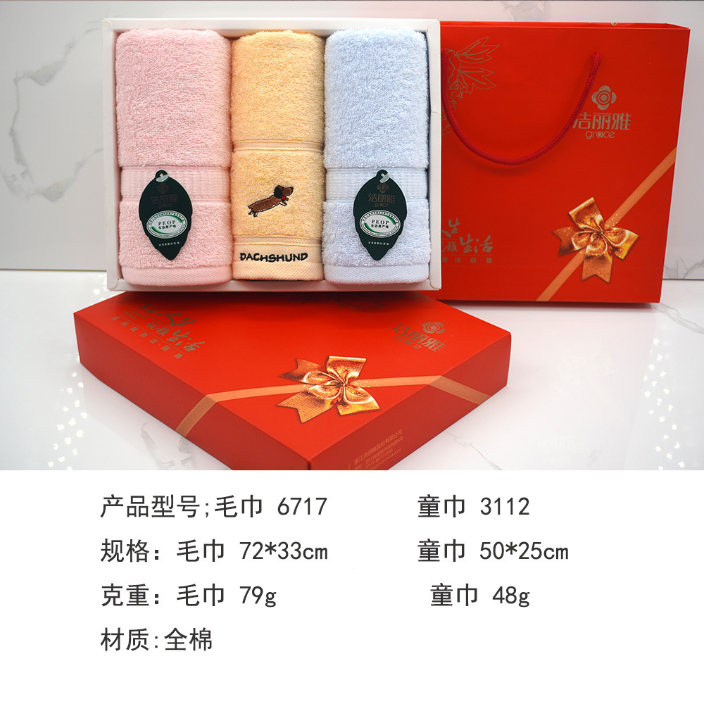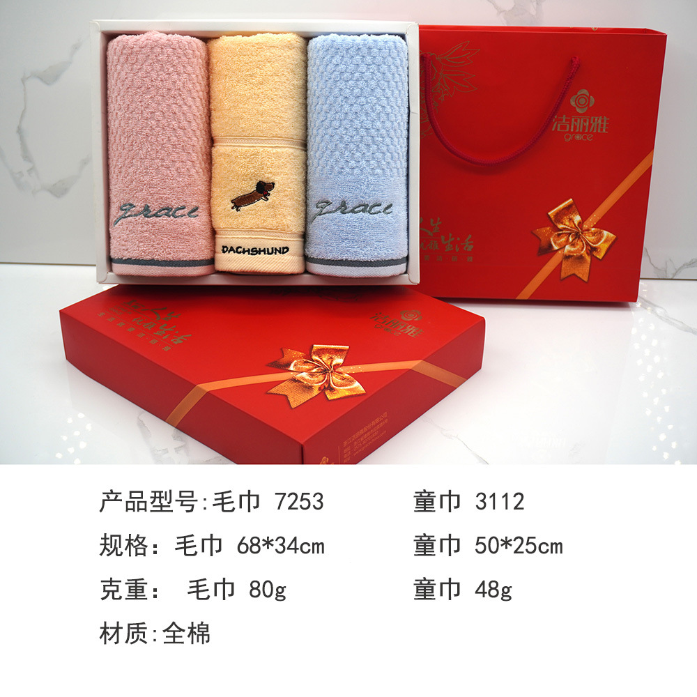 Jielia 3 팩 선물 상자 순면 2 수건 1 어린이 수건 3 박스 자수 로고 Jielia Towl 선물 상자