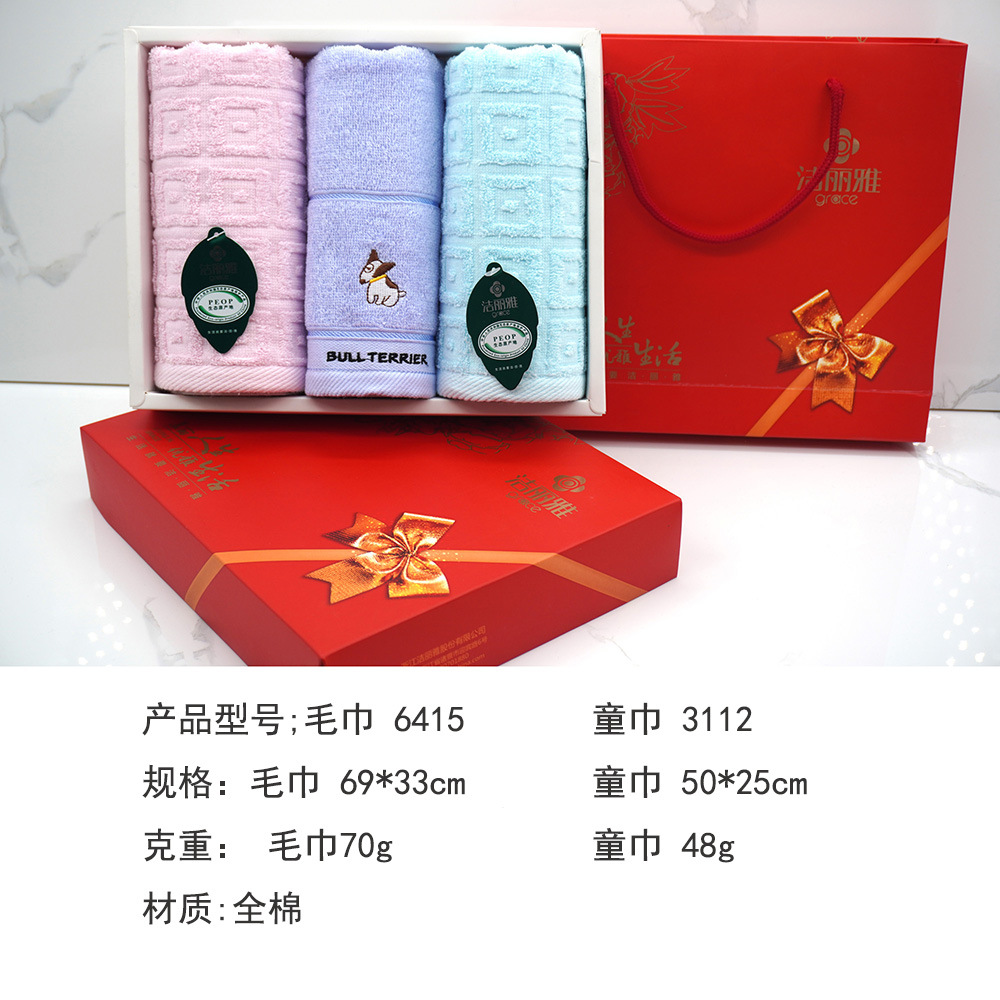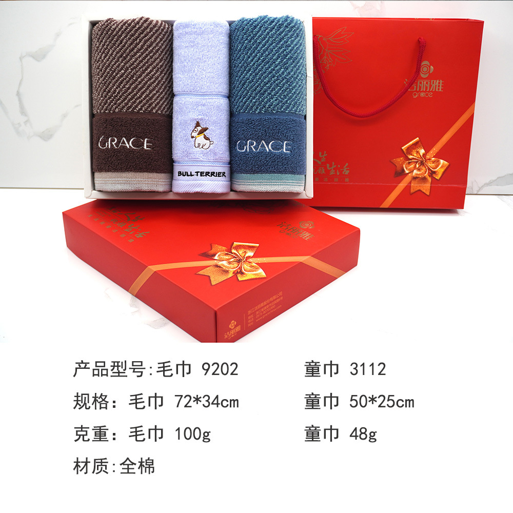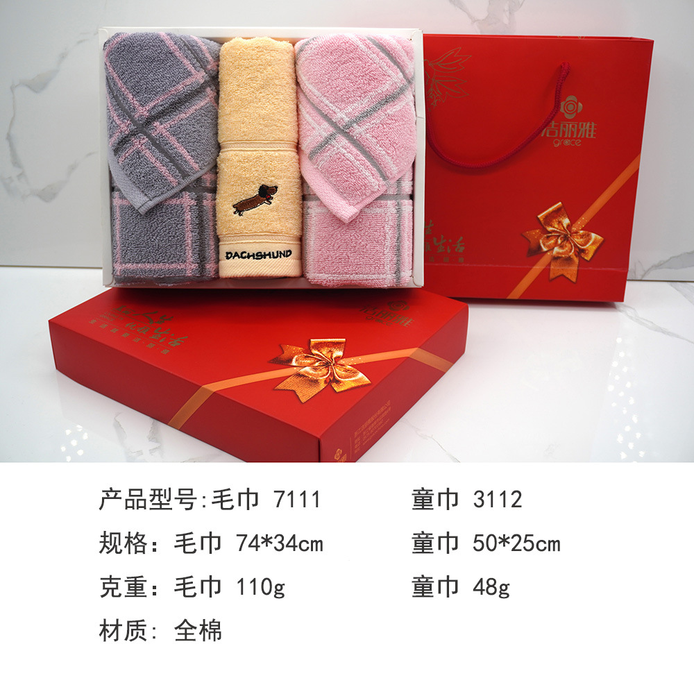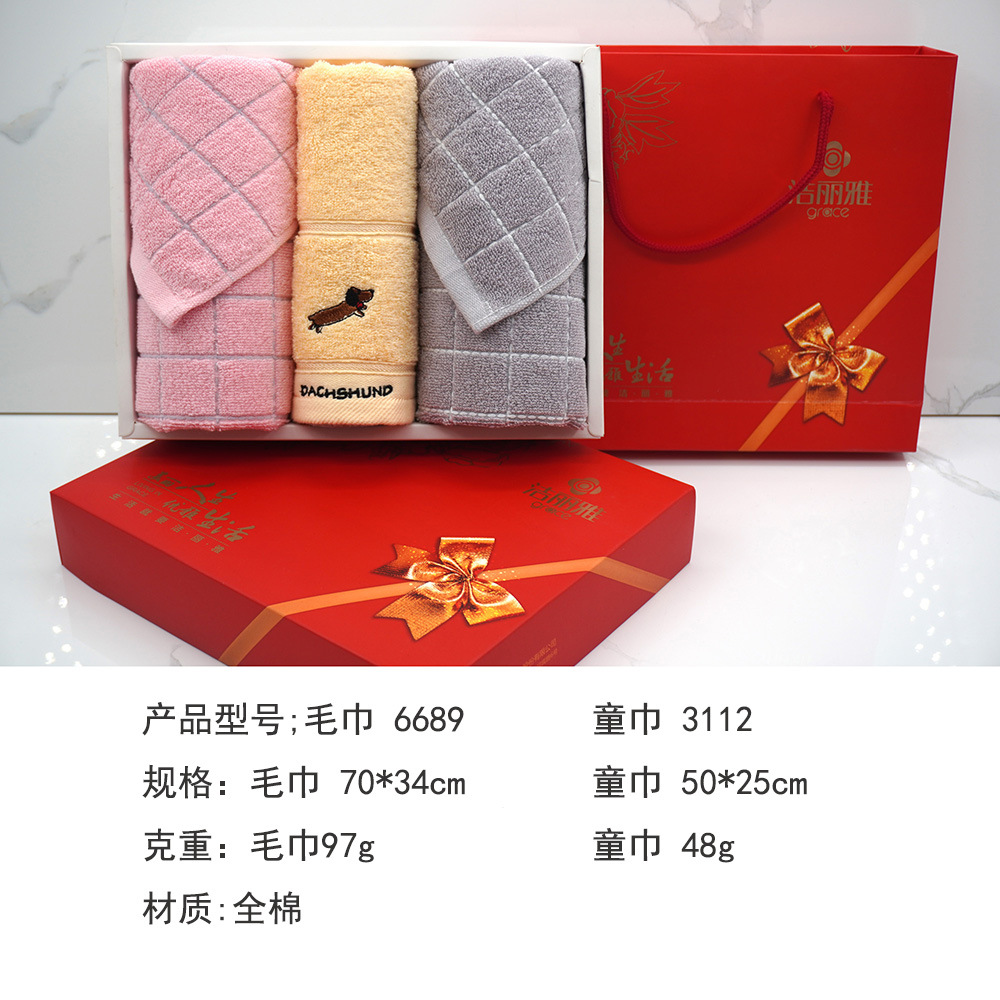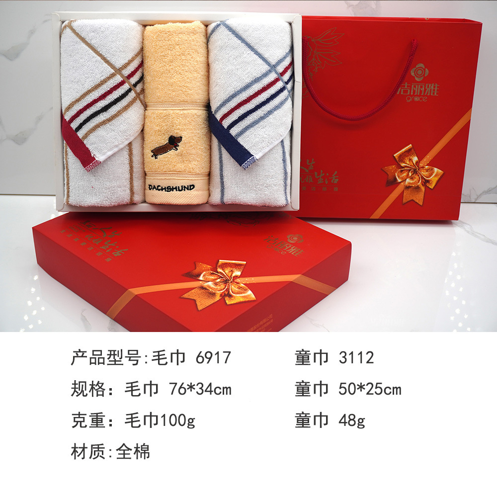 Jielia 3 팩 선물 상자 순면 2 수건 1 어린이 수건 3 박스 자수 로고 Jielia Towl 선물 상자