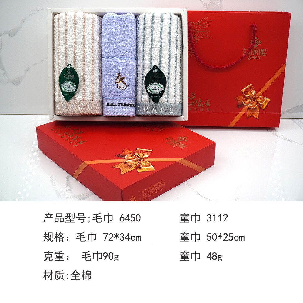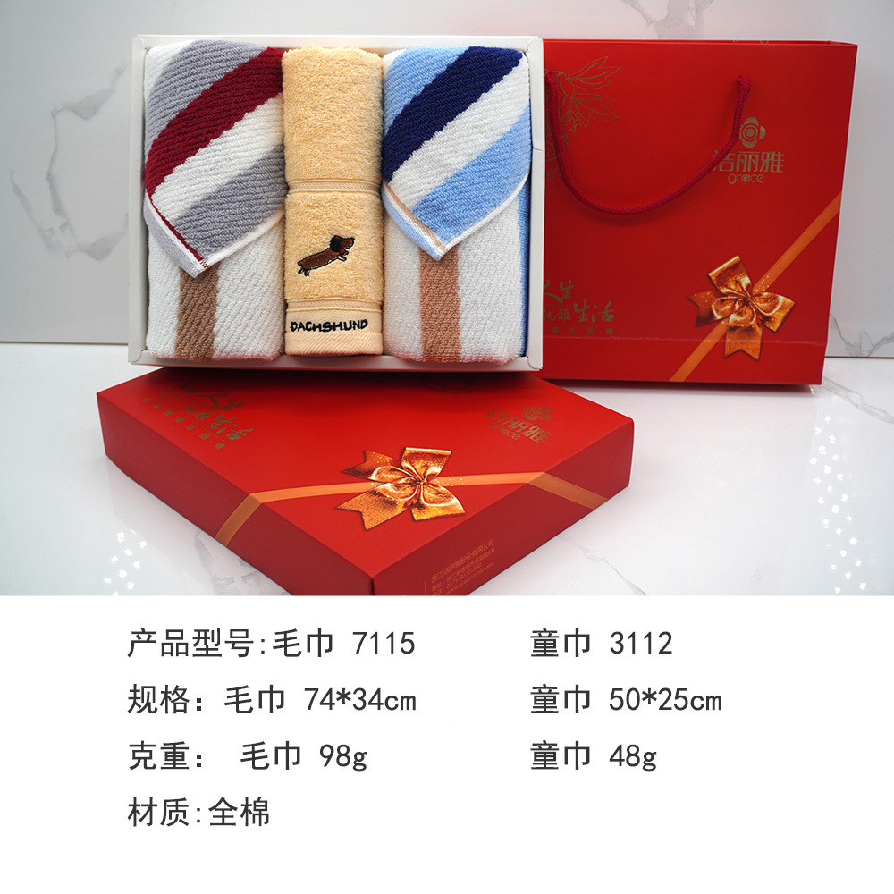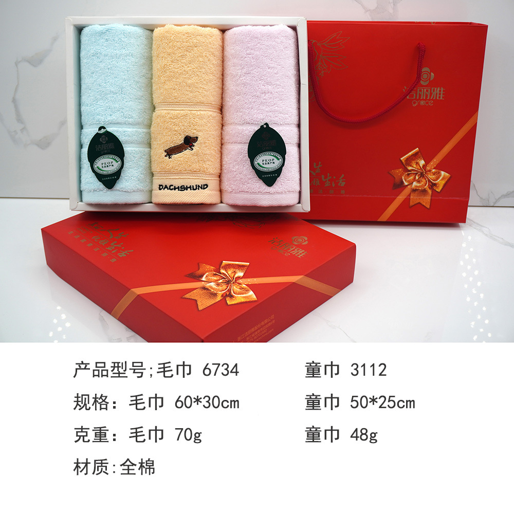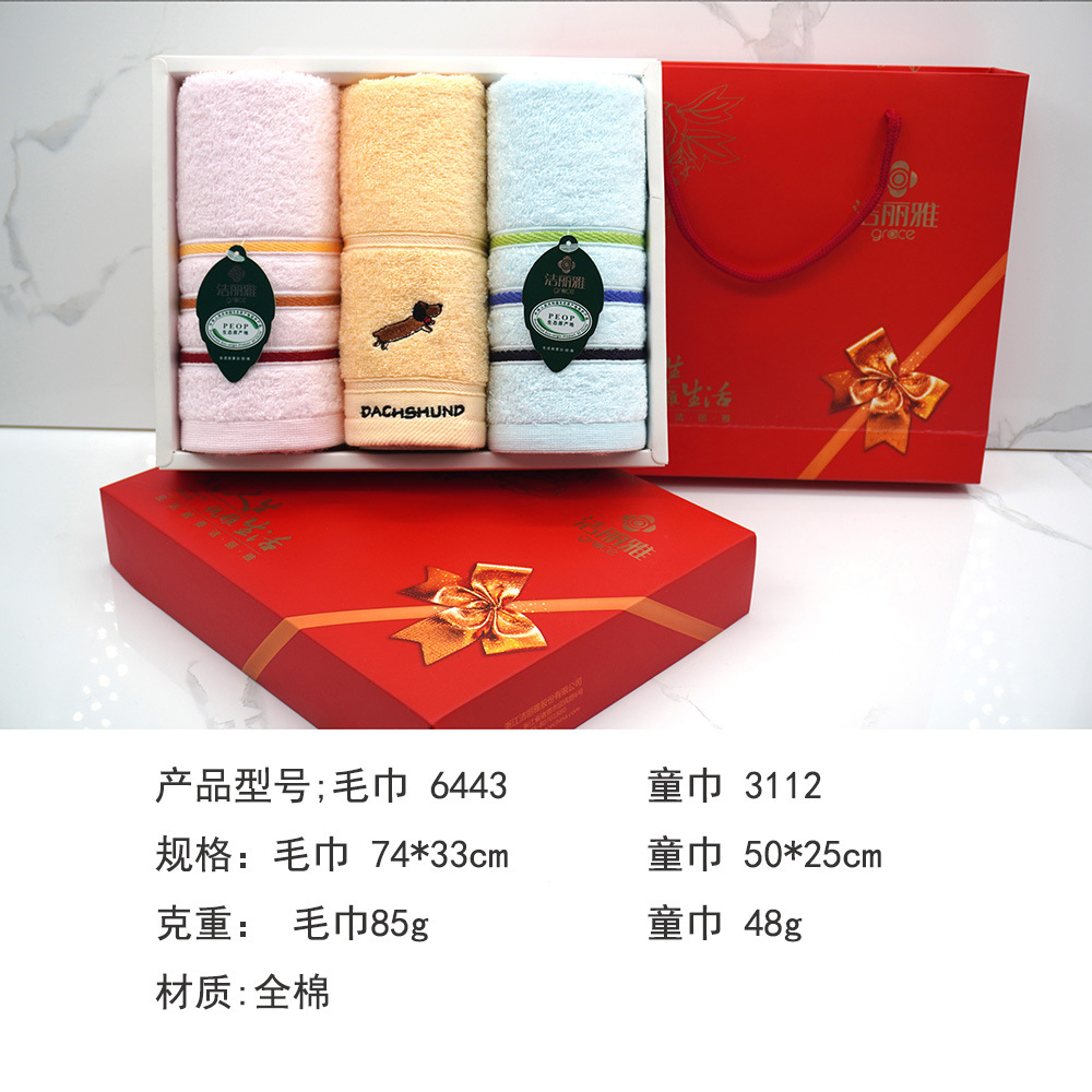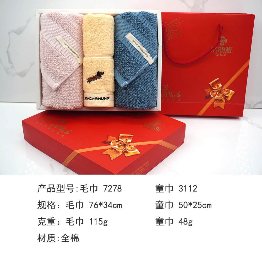 Jielia 3 팩 선물 상자 순면 2 수건 1 어린이 수건 3 박스 자수 로고 Jielia Towl 선물 상자