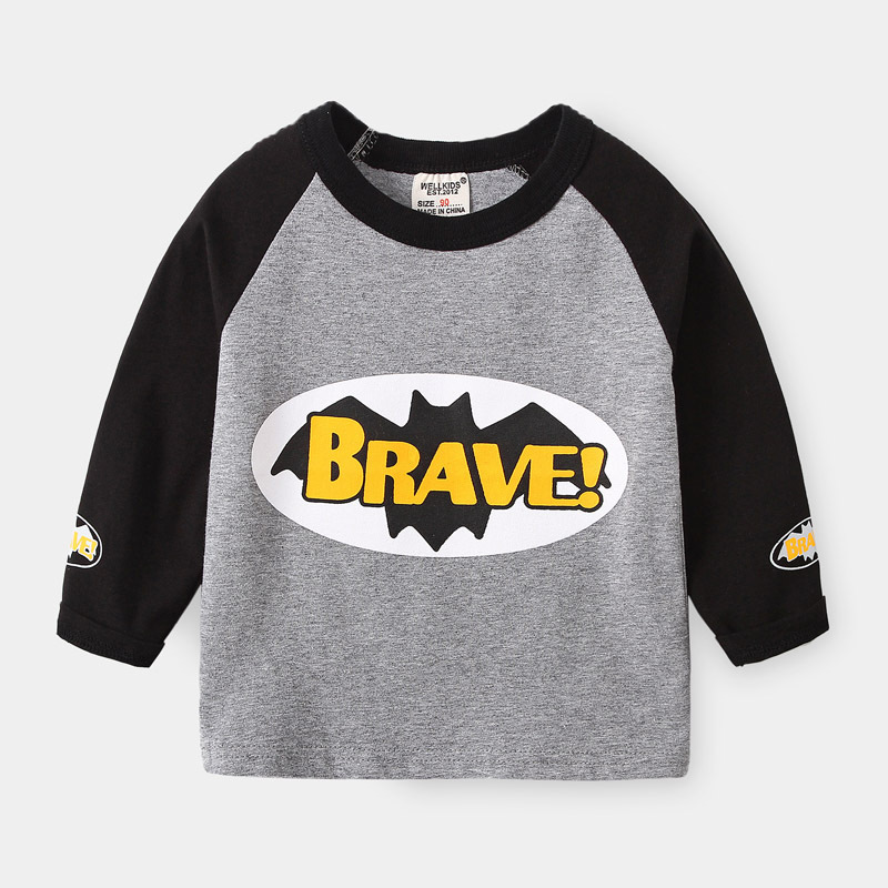 봄 아동복 긴팔 남성 및 아동용 긴팔 만화 레터 프린트 티셔츠 라운드 넥 캐주얼 긴팔 티셔츠스토어 가기