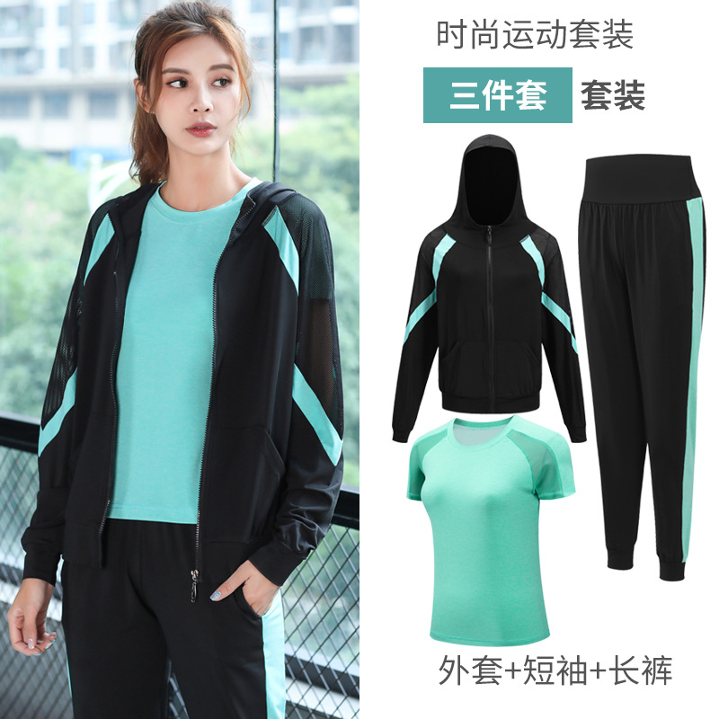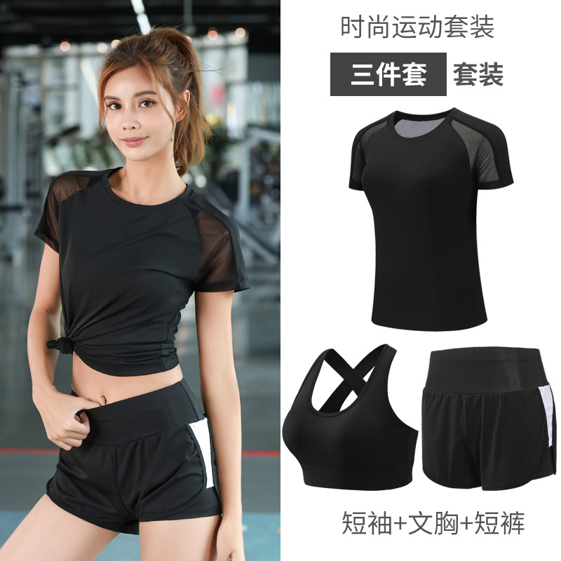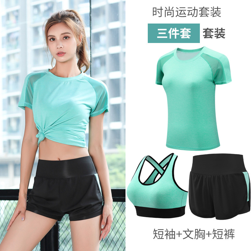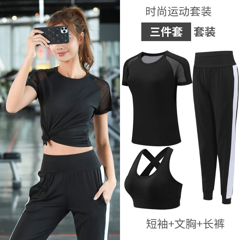 2021 새로운 요가 의류 세트 여성의 봄과 여름 체육관 스포츠 러닝 의류 느슨한 피트니스 의류 속건 의류 통기성스토어 가기