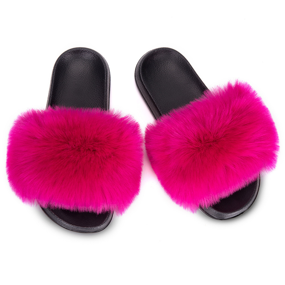 모조 여우 모피 슬리퍼 여성 패션 쇼핑객 모조 너구리 모피 겉옷 비치 신발 샌들 대외 무역스토어 가기