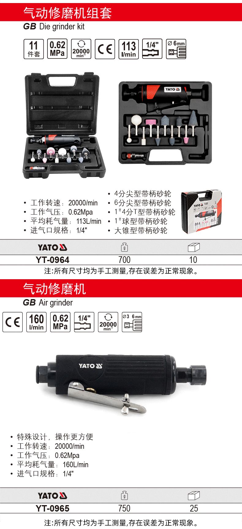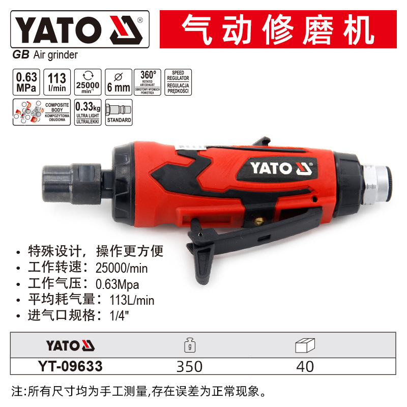 YATO (YATO) 공압 타이어 수리 및 조각 기계 연삭 휠 공기 연삭기 타이어 연삭기 고속 연삭