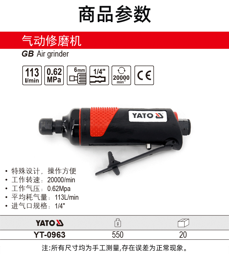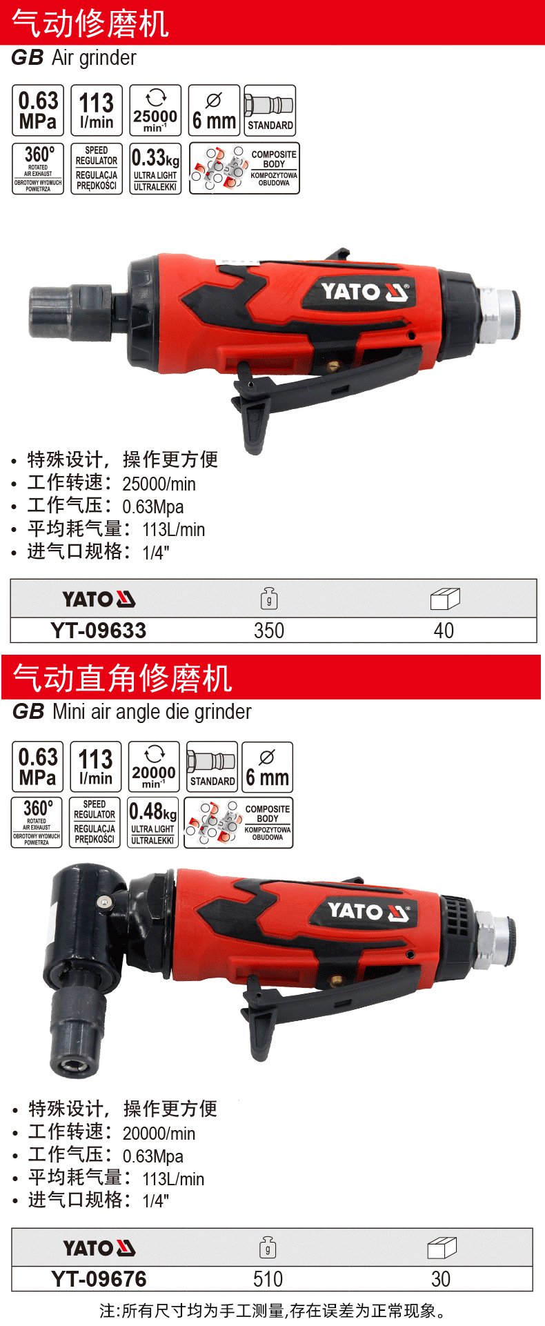 • ΦΦ공압 직각 연삭기 6mm 113L/최소 YT-09676