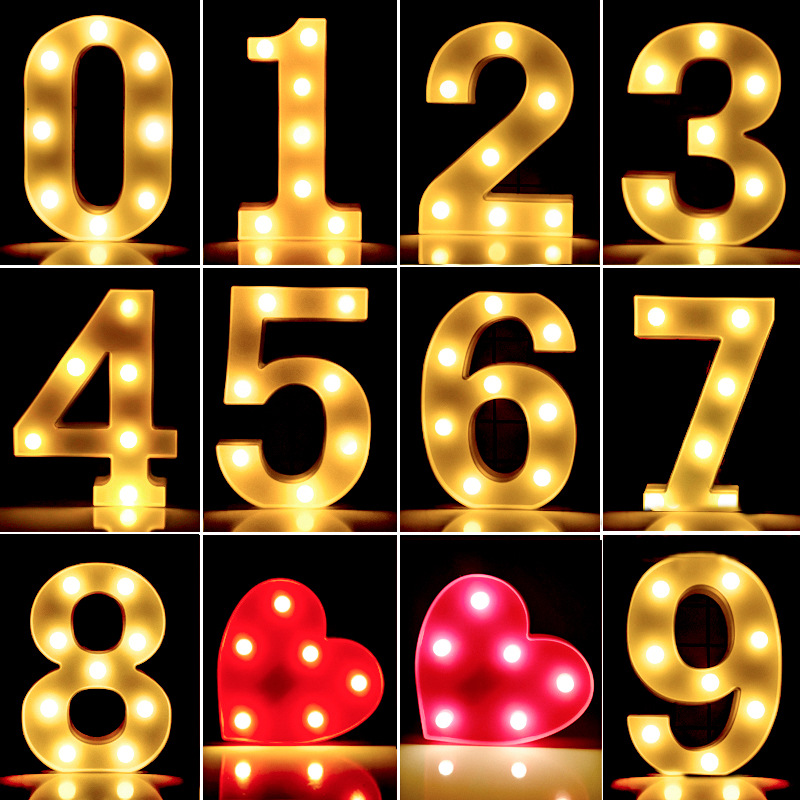 스몰 사이즈 led 디지털 영어 알파벳 램프 디지털 모델링 사진 소품 장식 파티 웨딩 램프