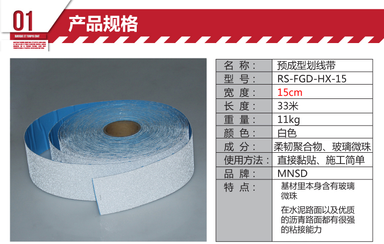 유리 구슬이 형성된 마킹 테이프가있는 MNSD 반사 마킹 테이프 표면 편리한 폭 15cm스토어 가기