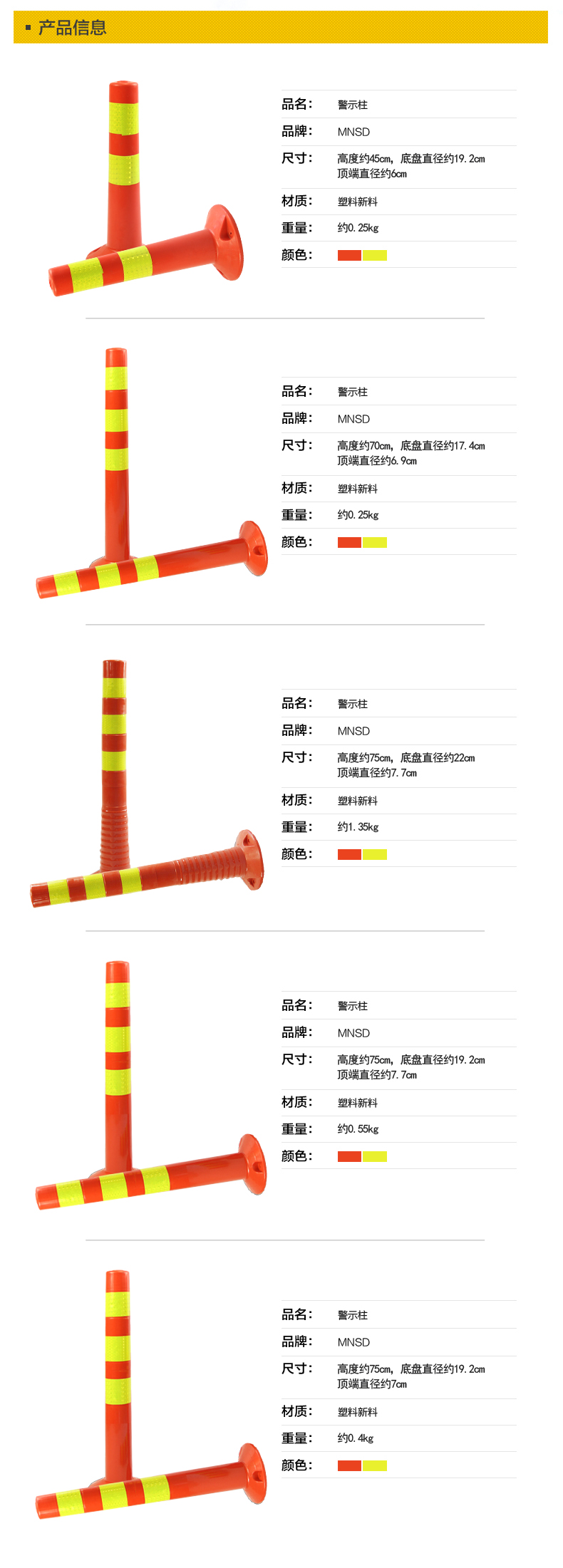 MNSD New 45/70/75cm 플라스틱 도로 시설 횡단 표지판 경고 파일 탄성 기둥