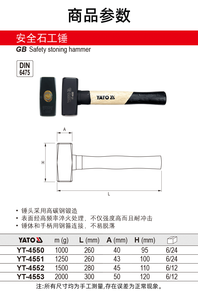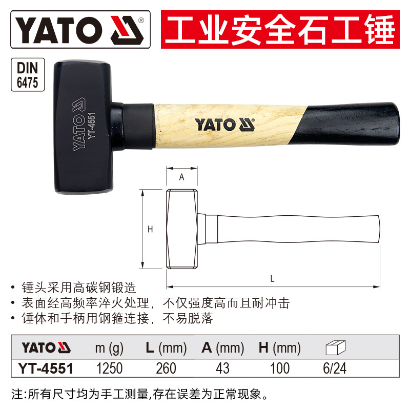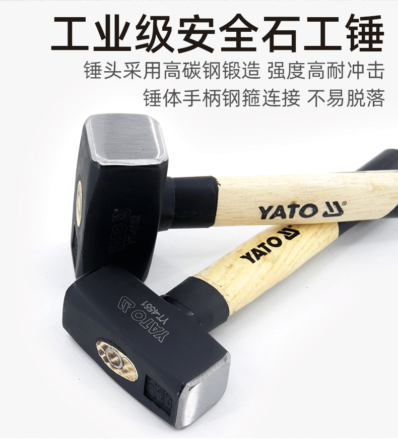 YATO 안전 석조 망치 결합 된 쇠 망치 망치 사각 나무 손잡이 무거운 벽 스매싱 벽 철거 단단한 손 망치