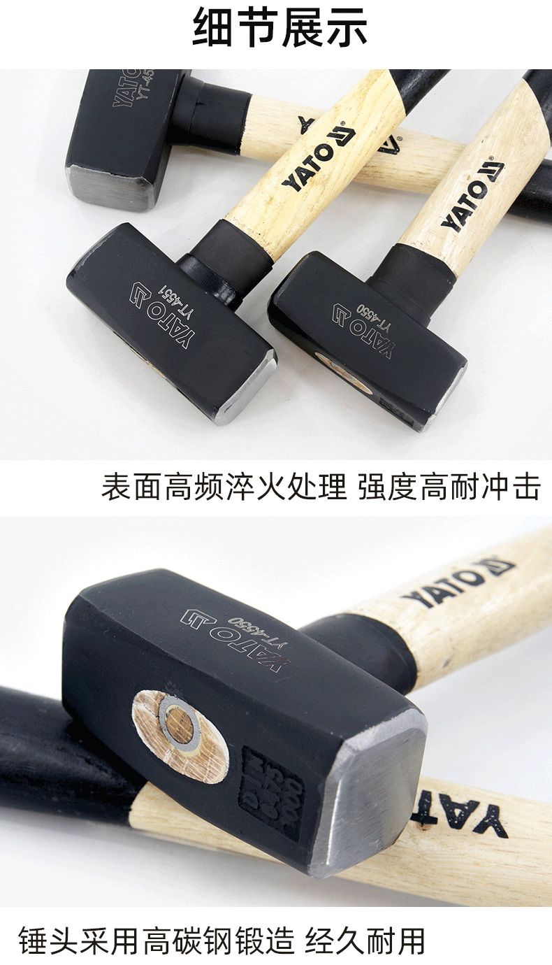 YATO 안전 석조 망치 결합 된 쇠 망치 망치 사각 나무 손잡이 무거운 벽 스매싱 벽 철거 단단한 손 망치스토어 가기