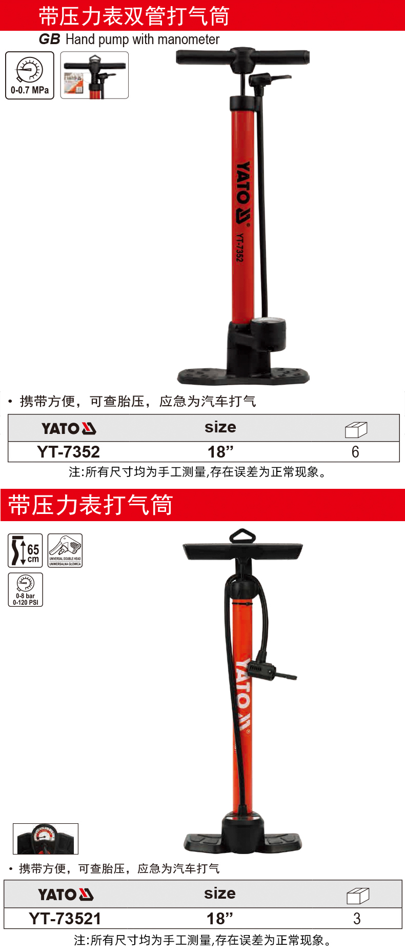 • 발로 작동하는 단일 튜브 펌프 0-7BAR YT-7349
