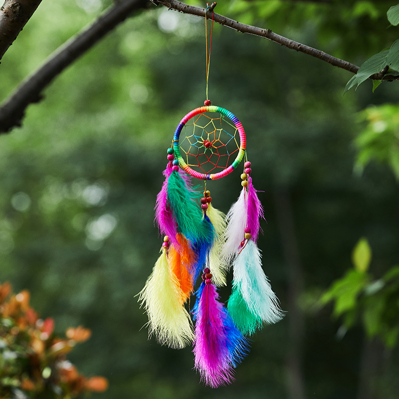 나무 구슬 Dreamcatcher 공예 홈 깃털 옷걸이 수제 직조 바람 차임 일본과 한국의 방 장식