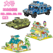 厂家地摊展销会庙会儿童益智白卡3D立体拼图玩具DIY纸制拼图模型