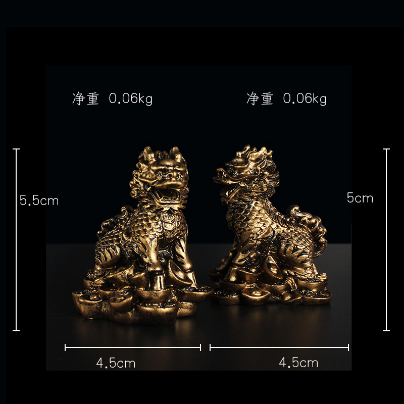 황금 청동 유니콘 장식품 한 쌍의 중국 기도 가정 장식 가구 실속 공급스토어 가기