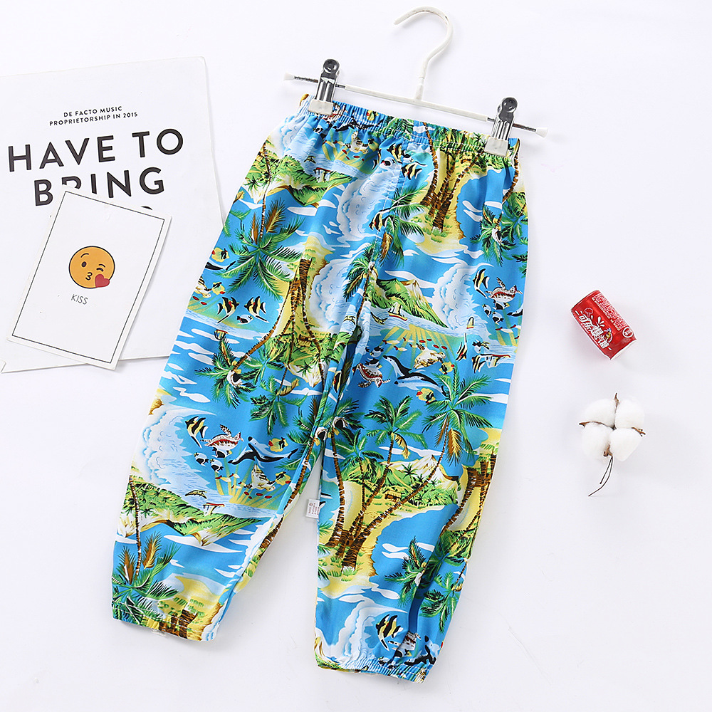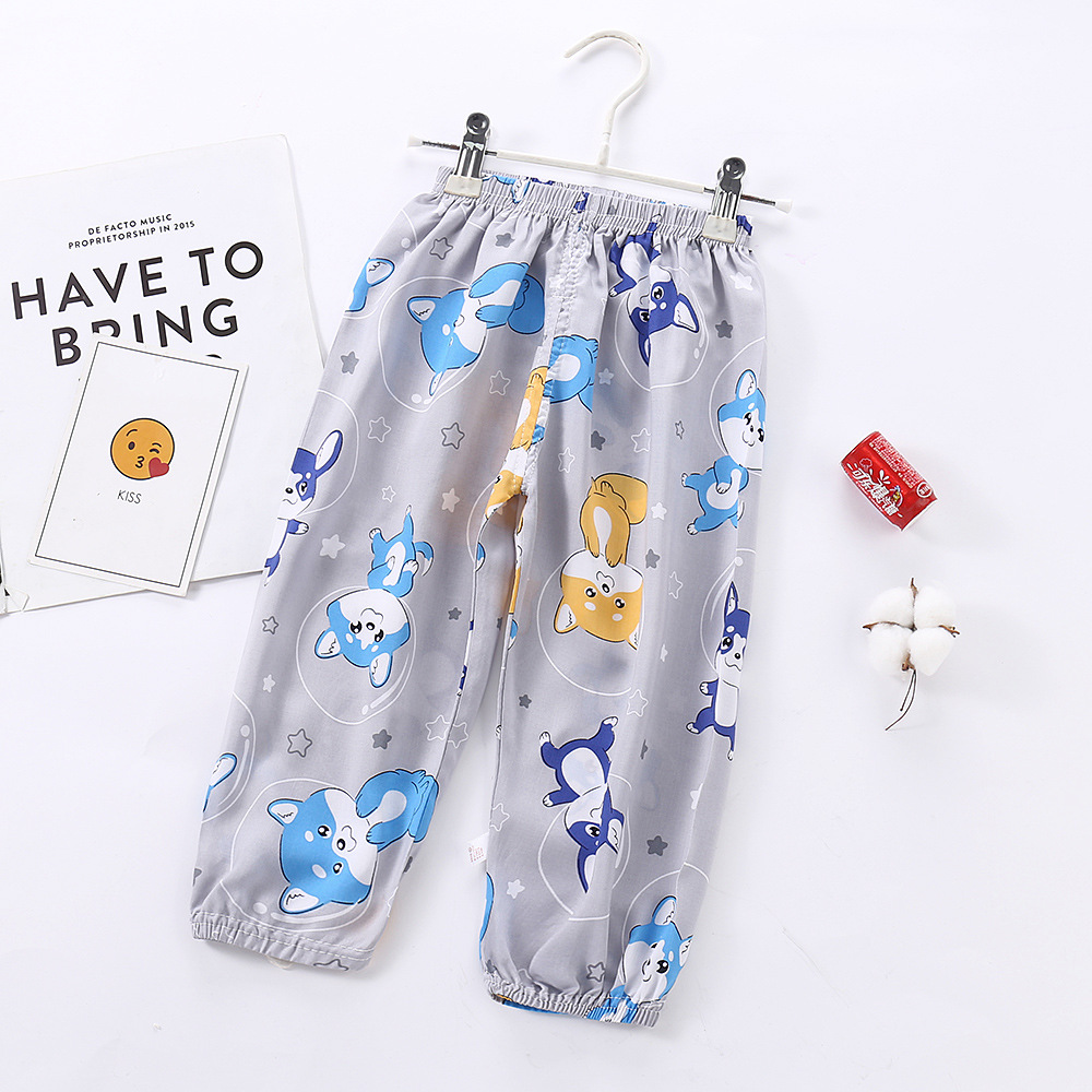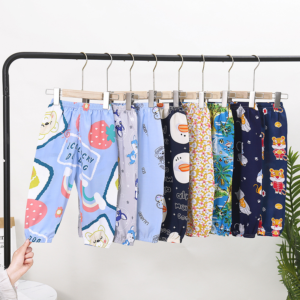 지리 아동용 모기 방지 바지 여아용 랜턴 팬츠 면 실크 아동 바지 에어컨 바지 남아용 9부 바지 트렌디한 아동복