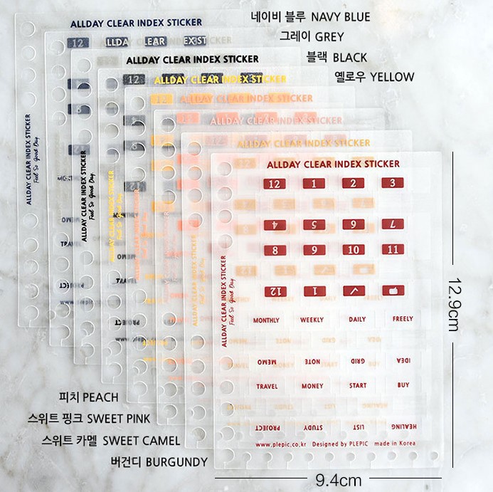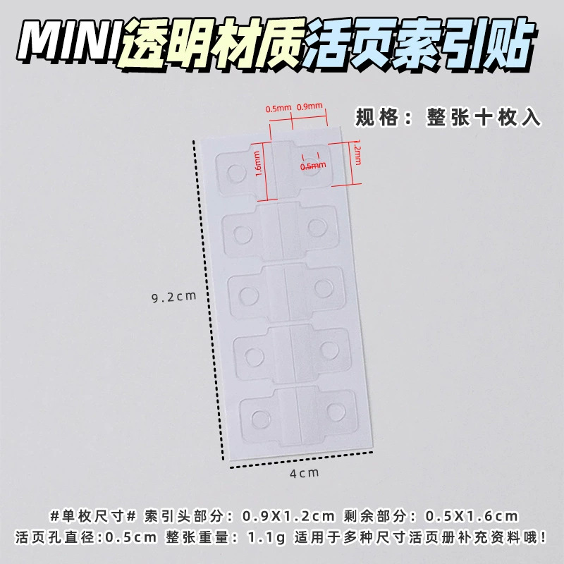 • 단일 구멍 루스리프 인덱스 스티커(1장, 스티커 10개), 장
