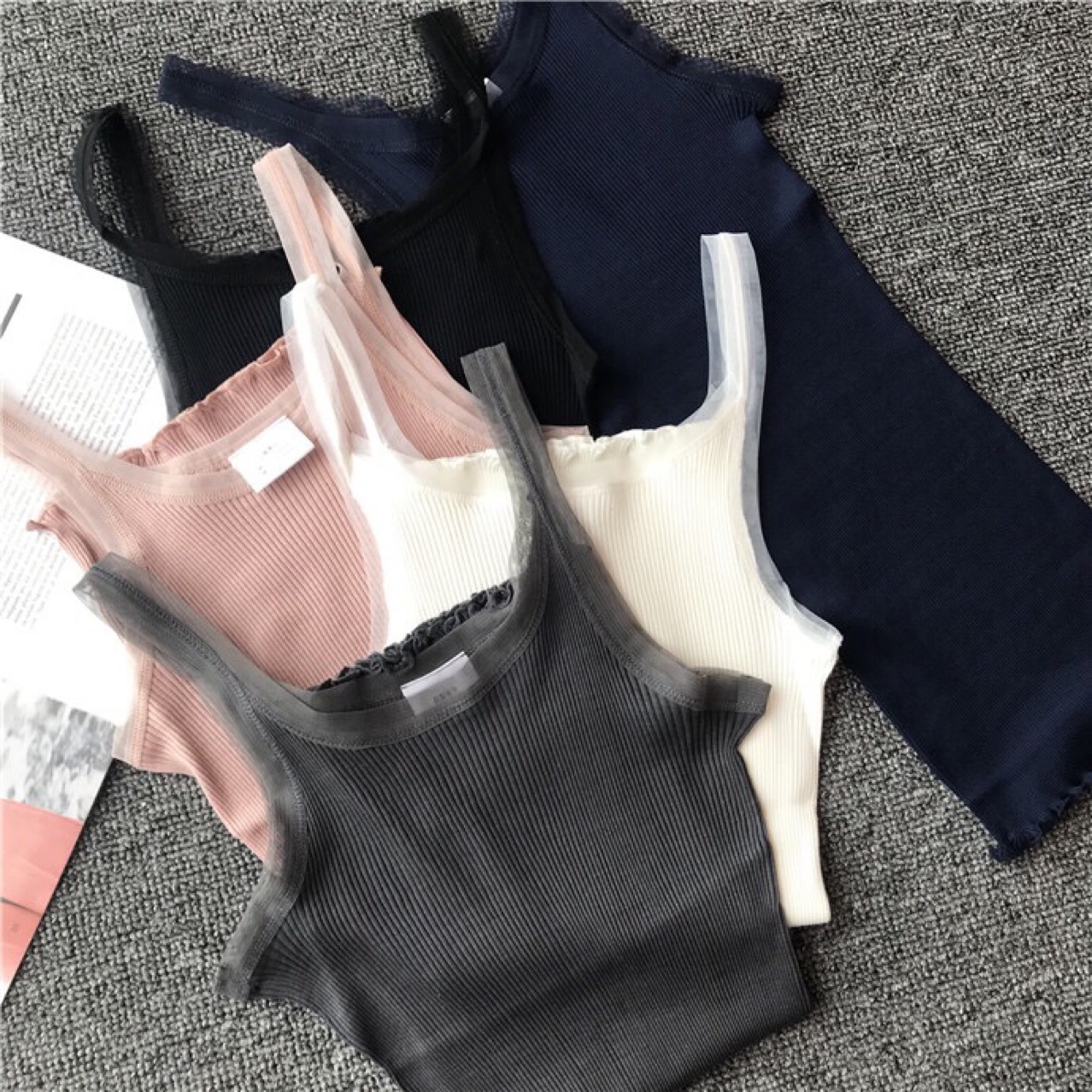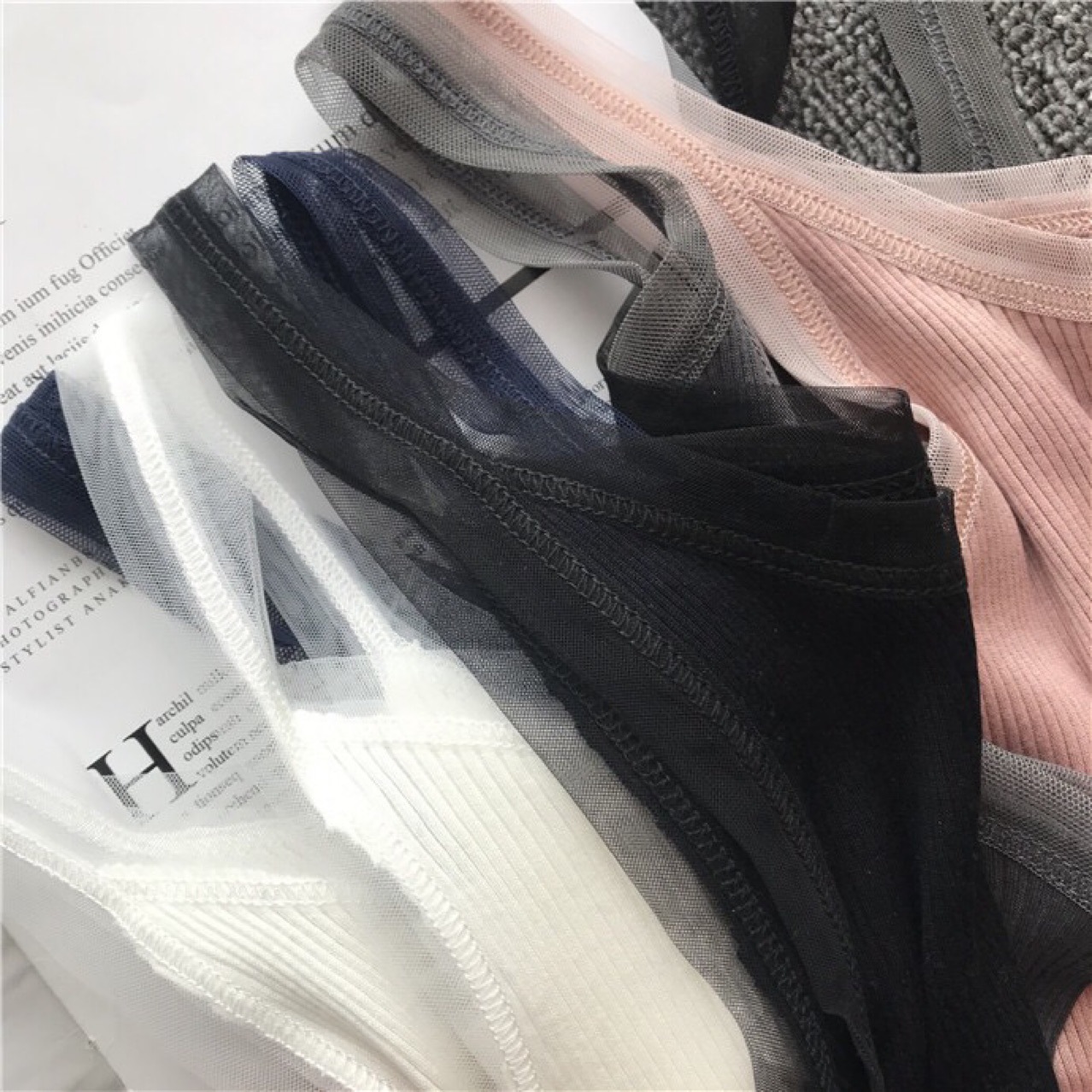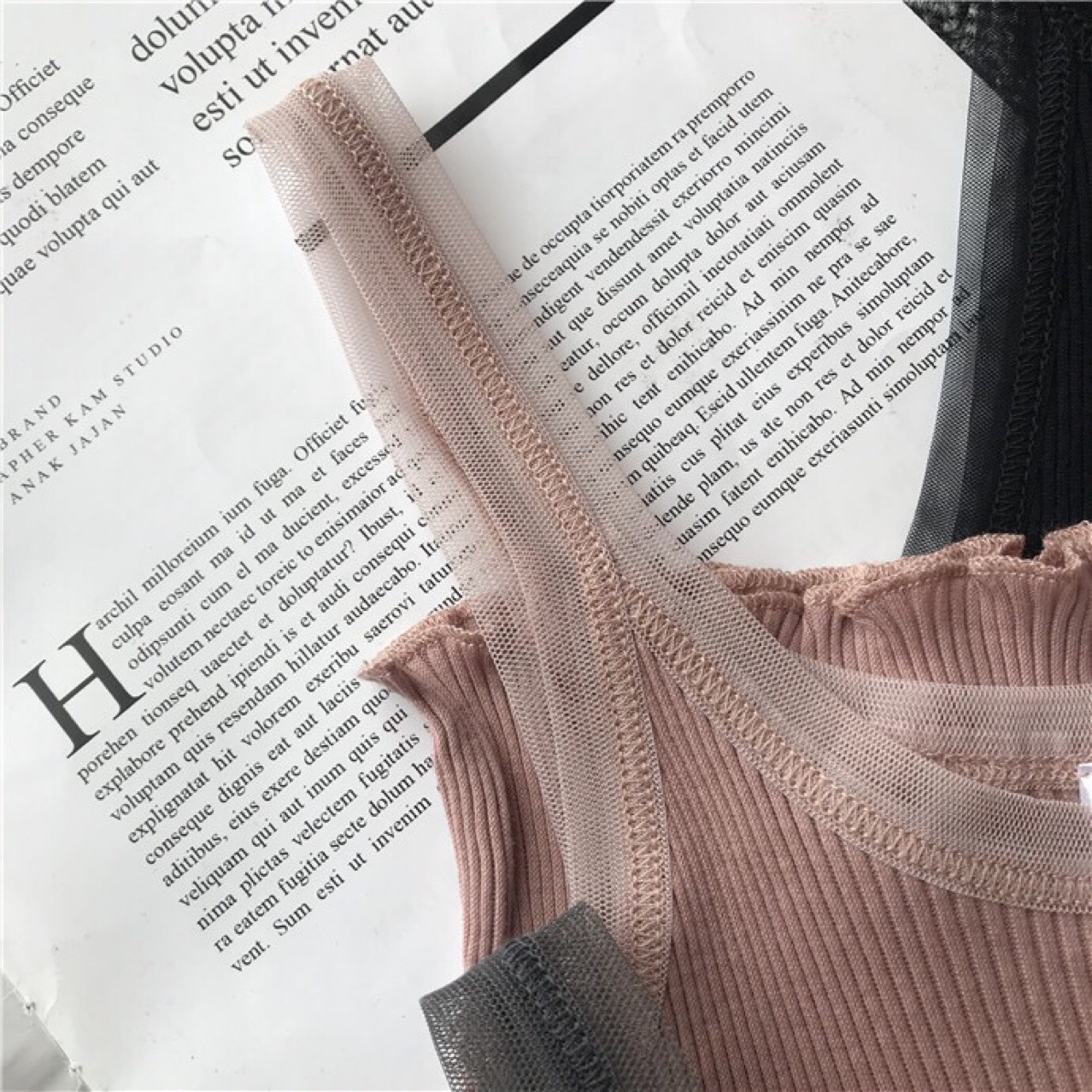 肩带欧根纱拼接设计 小小的点缀 hen有女人味