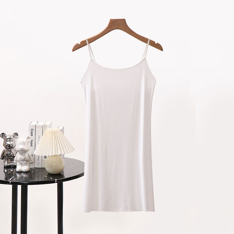 여름 아이스 실크 원활한 조끼 여성용 중간 길이 초박형 실키 슬림 스트랩 아름다운 백 슬링 잠옷 베이스 내부 페티코트