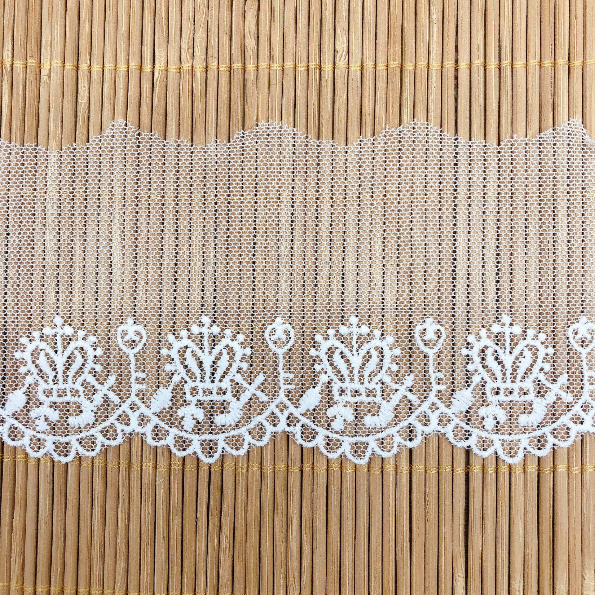 재고 도매 우유 실크 메쉬 자수 수용성 레이스 폭 7.1cm 크라운 바코드 웨딩 원피스 스커트