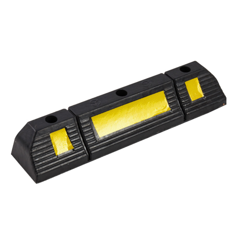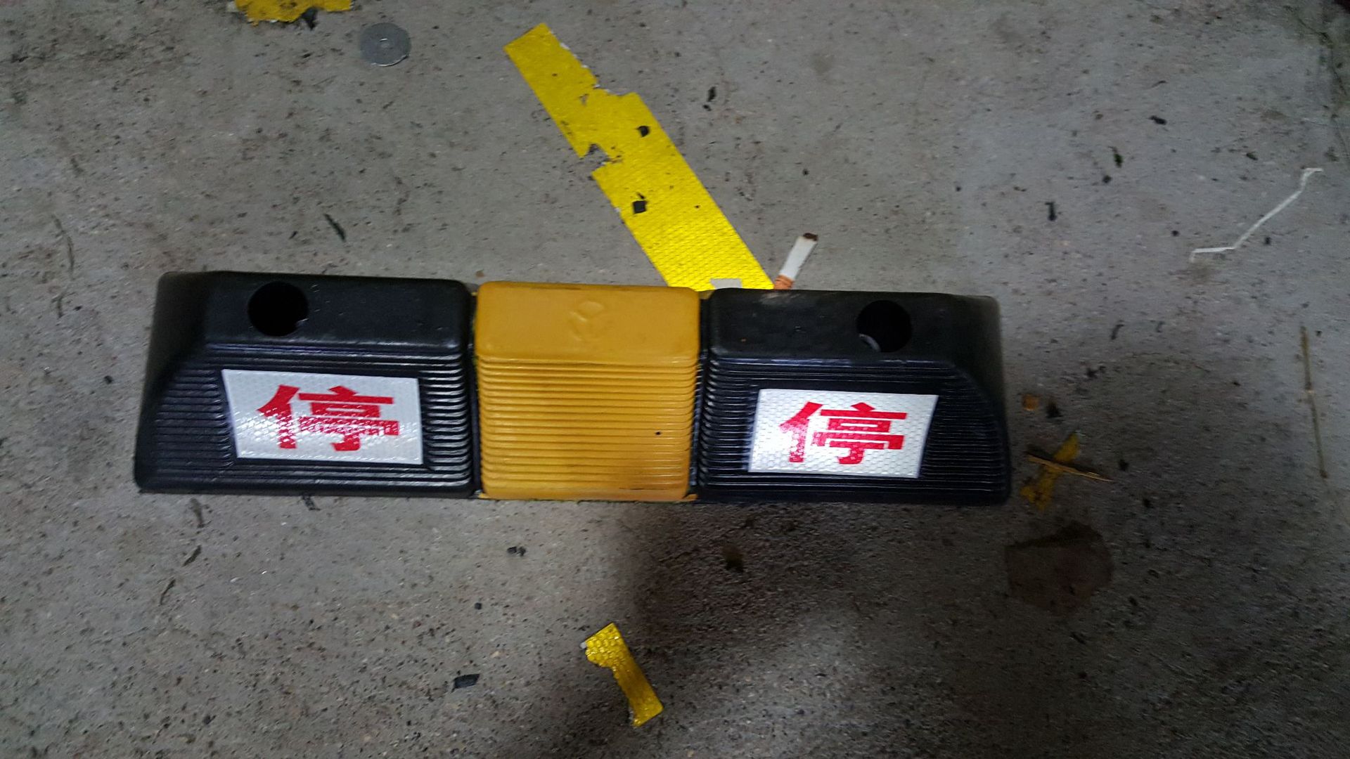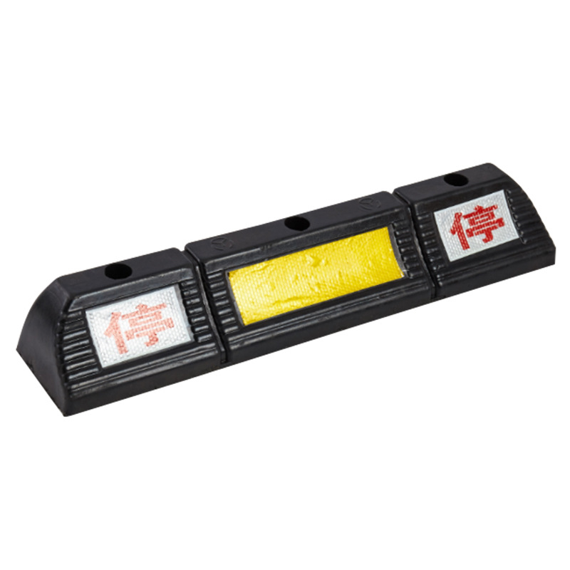 2. 表面贴有耐磨、反光亮度较高的黄色成型标贴,使得车位停止器黑黄相间,特别醒目,晚上黄色成型标贴反射光线。