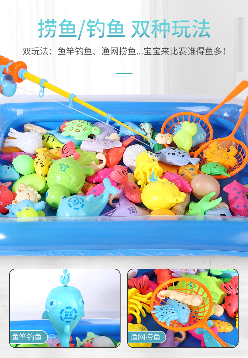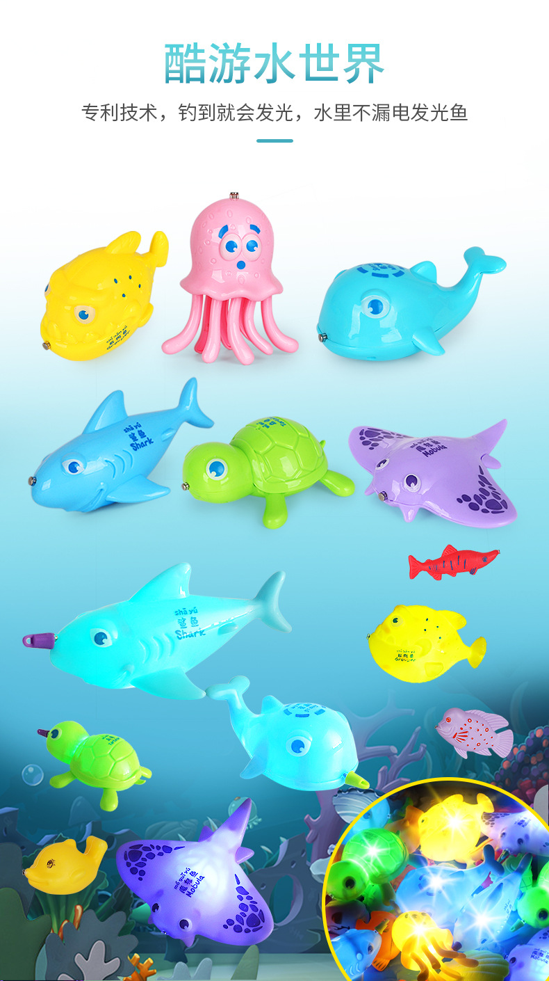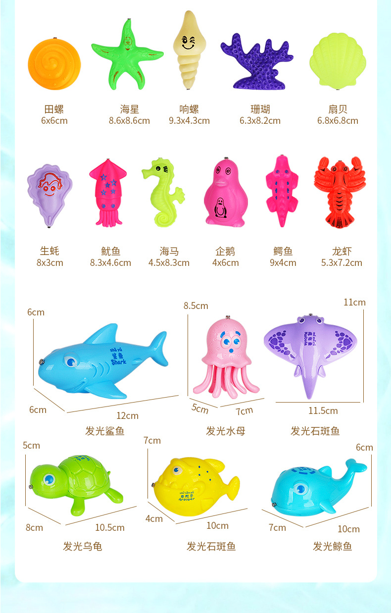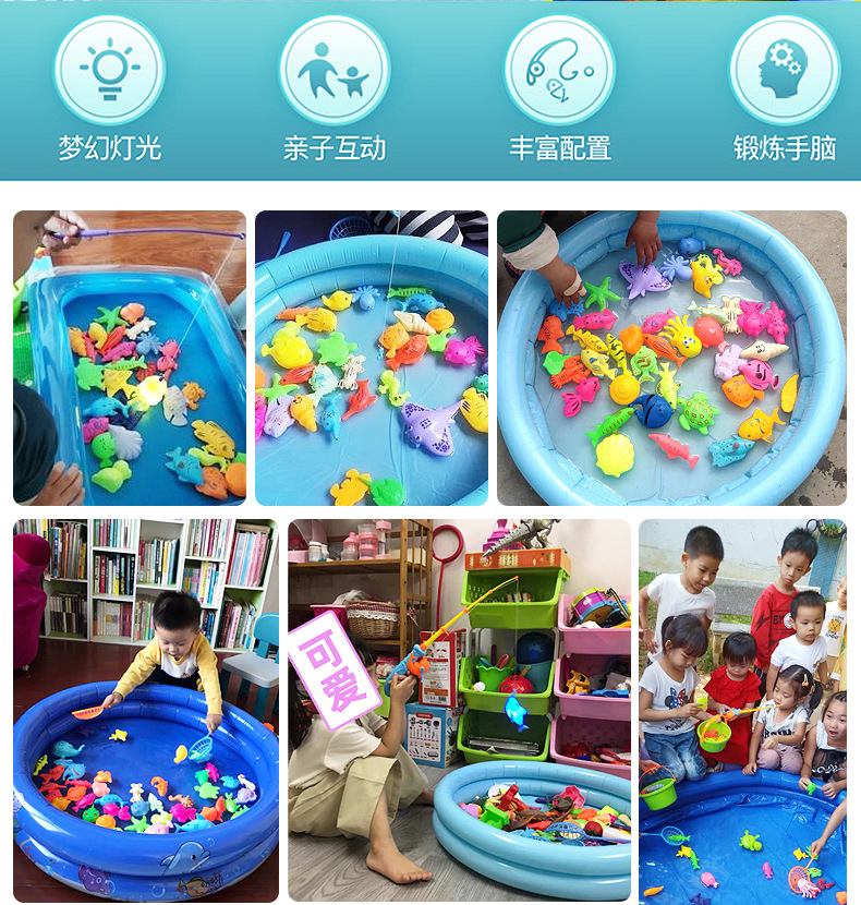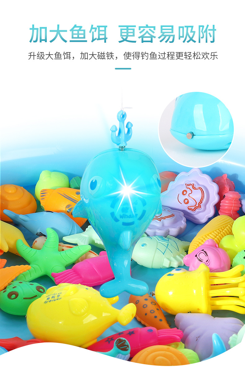 어린이 낚시 장난감 불어 병 물고기 세트 자기 물 아기 플라스틱 빛나는 물고기 여름 광장 수영장 장난감스토어 가기