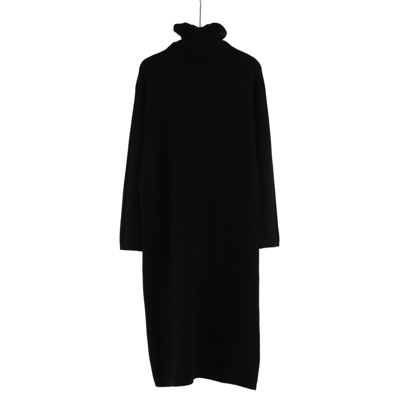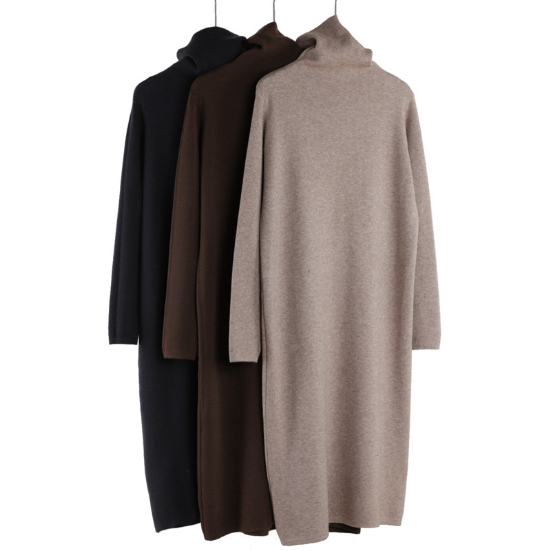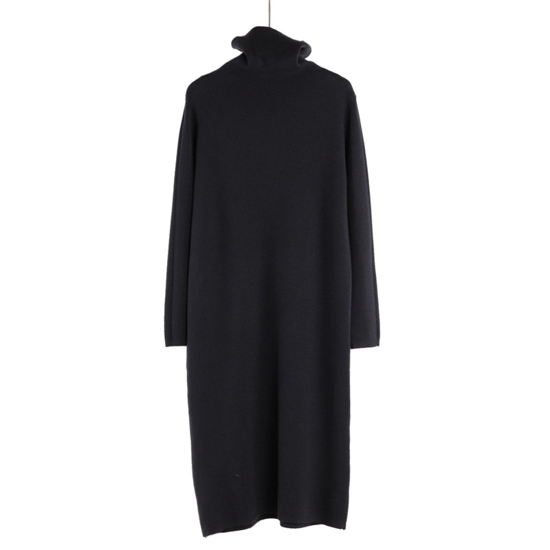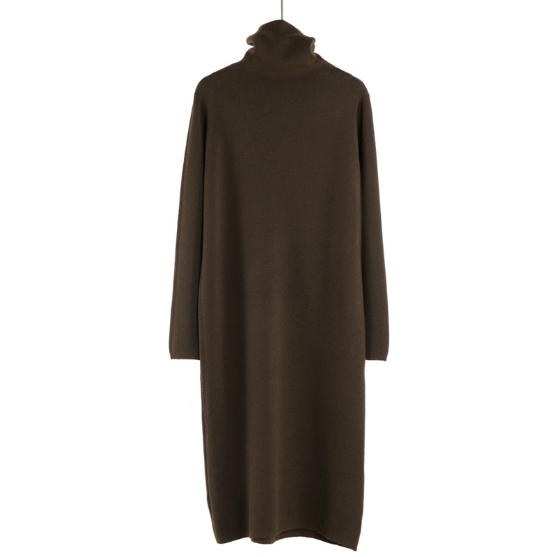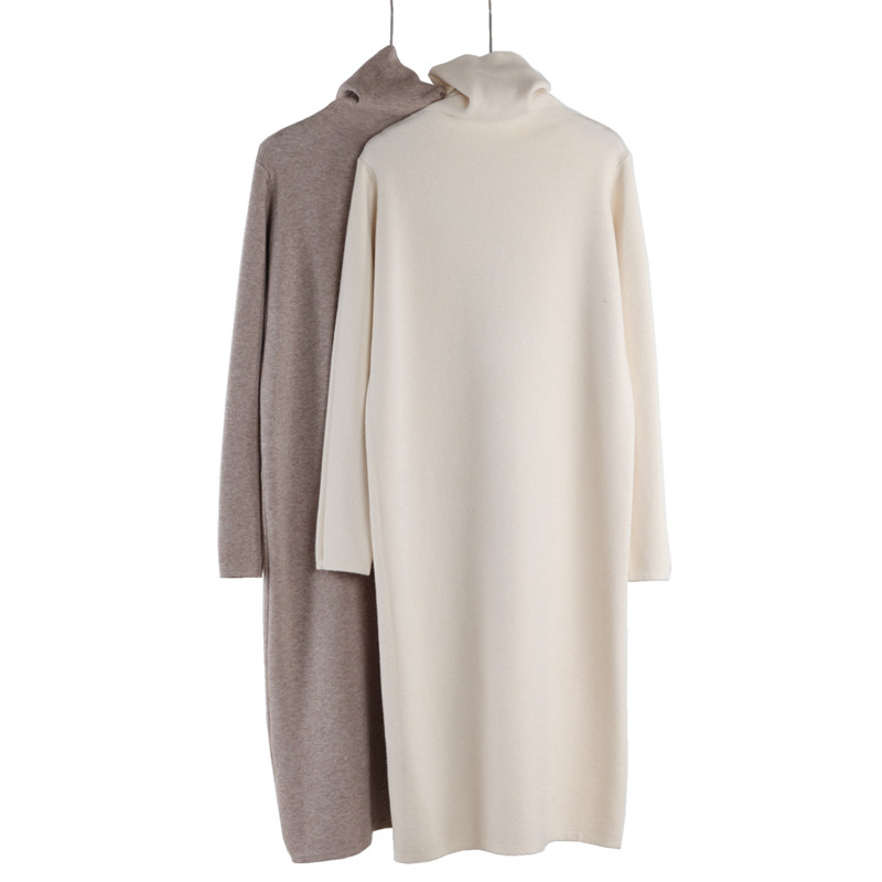 니트 베이스 원피스 여성용 이너웨어 가을 겨울 2025 신상 하이넥 중간 길이 우아한 무릎 위 스웨터 롱 드레스