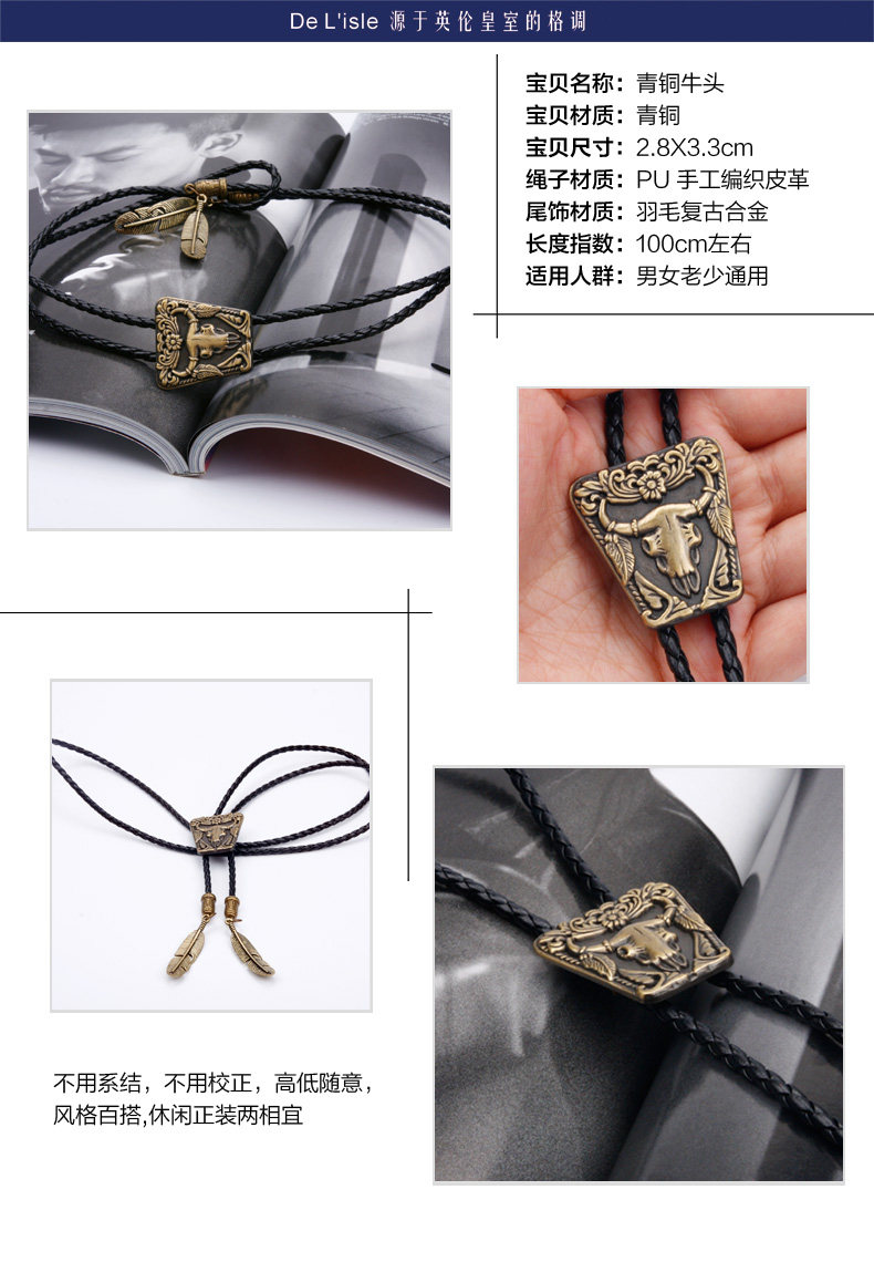 폴로 타이 볼로 타이 레트로 웨스턴 데님 개인화 된 타이 여름스토어 가기