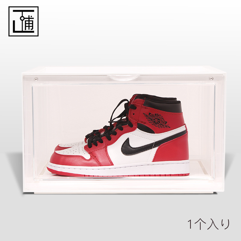 신발 플라스틱 단단한 신발 상자 남자 농구화 보관함 투명 자기 흡입 수집 아크릴 AJ 신발 상자 도매 공장