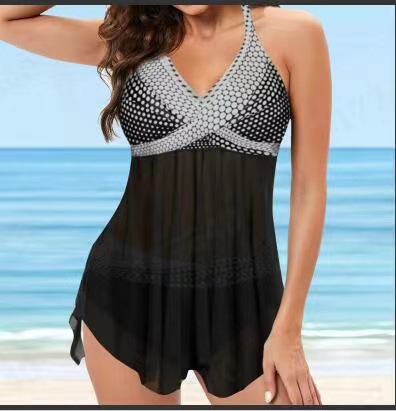 2021新款欧美比基尼连体泳衣复古波点外贸速卖通亚马逊泳装bikini
