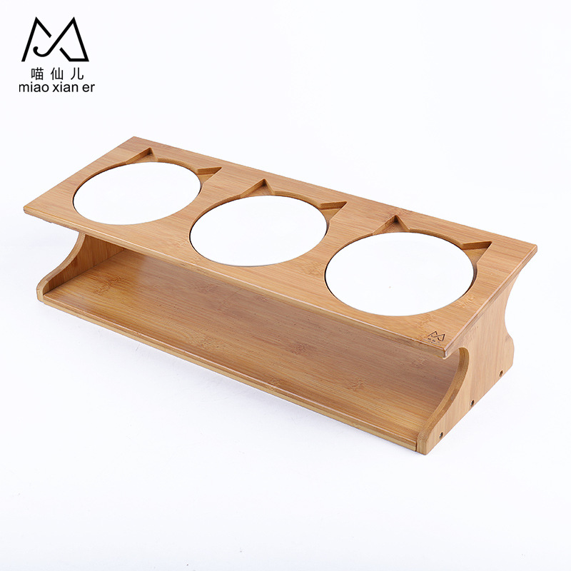 묘선녀 고양이 밥그릇 세라믹 받침대 강아지 밥그릇 애완동물 밥그릇 세 개의 밥그릇 목 보호 높은 받침대 비스듬한 입구 고양이 밥그릇 고양이 용품 도매