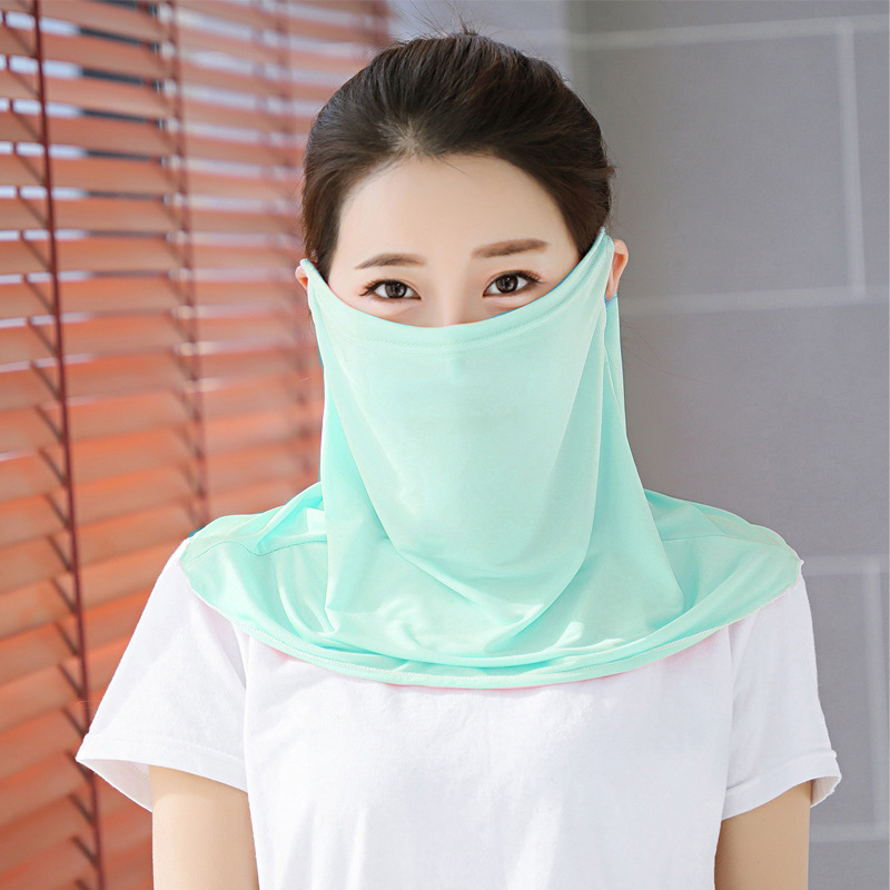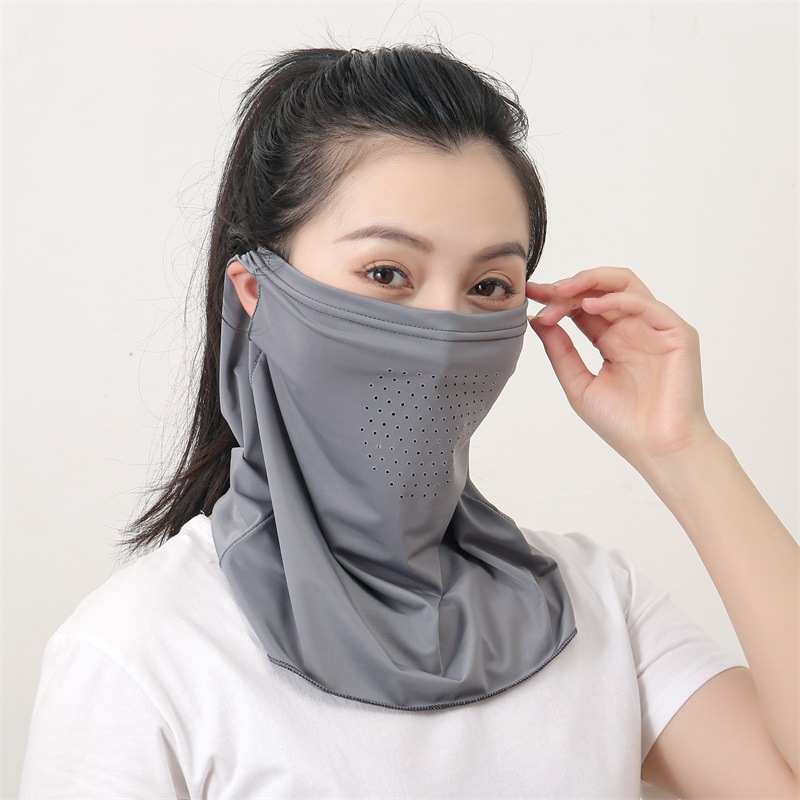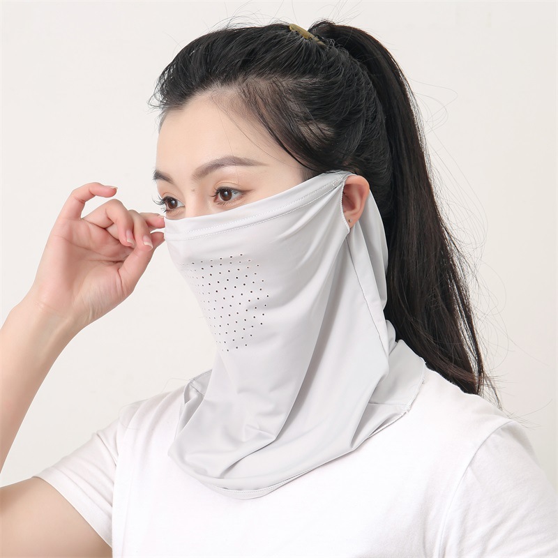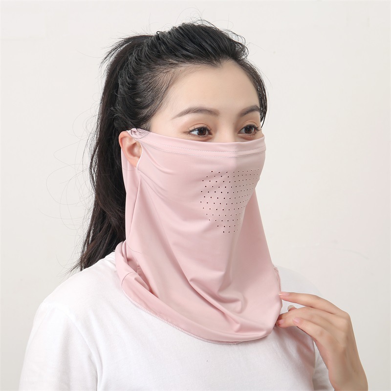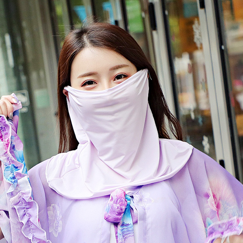 단색 다용도 차양 마스크 여름용 목 보호 자외선 차단 아이스 실크 자외선 차단 마스크 통기성 베일 통기구